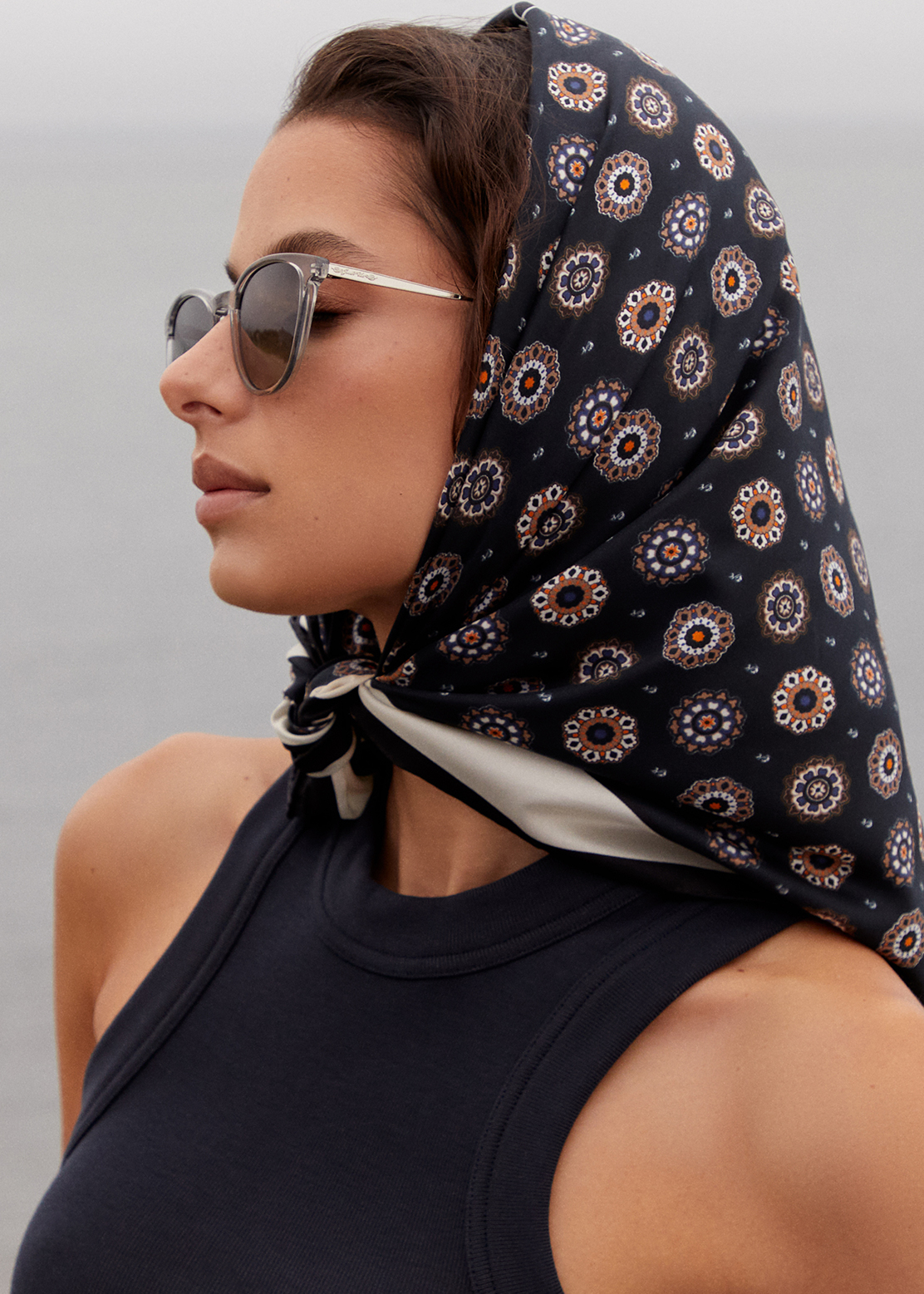 Accessories in the women’s capsule include a bucket hat, silk-blend scarf, custom inner tube, hair scrunchie and bucket hat, all designed in the collection’s foulard print.