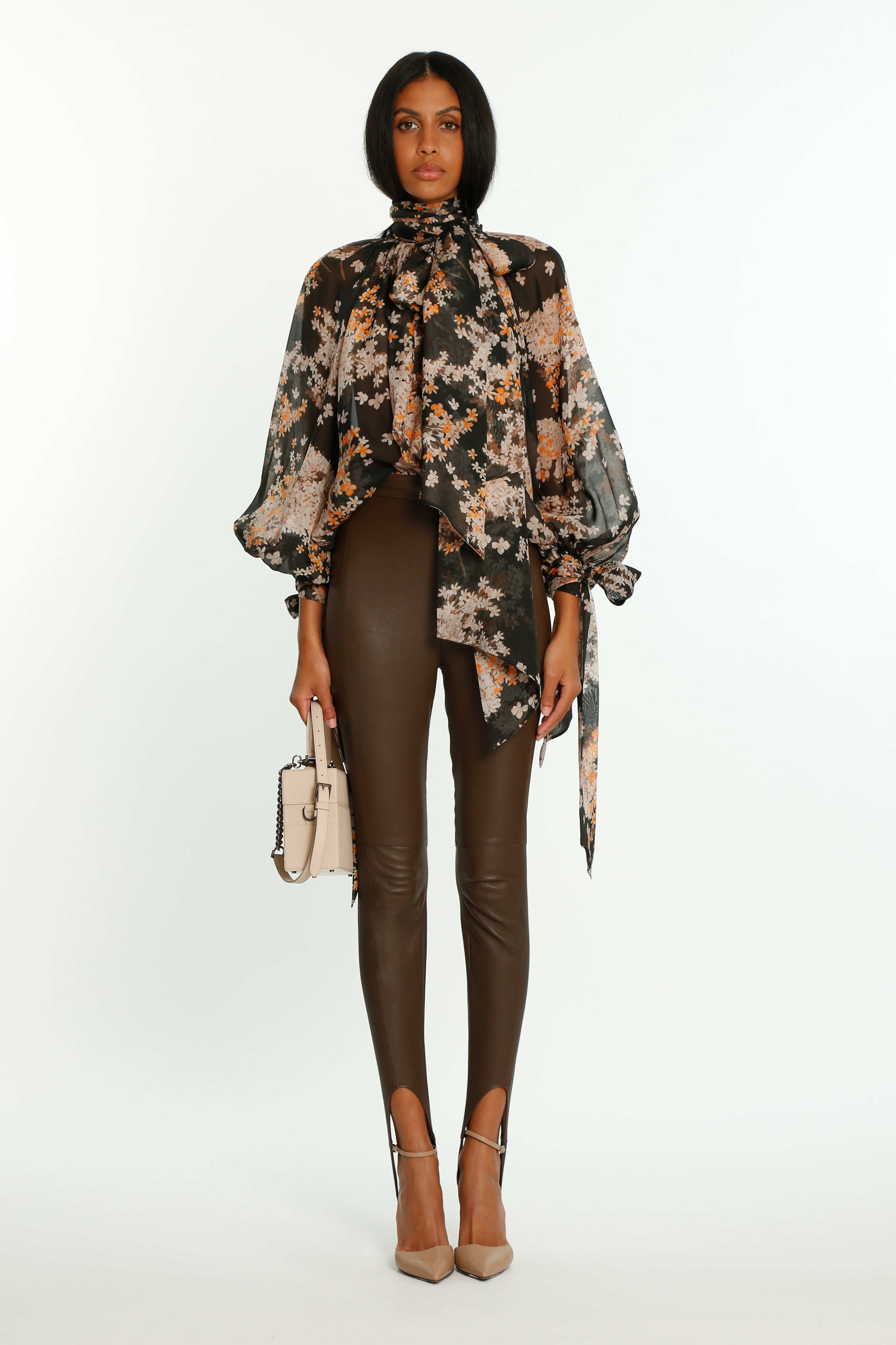 This seasons looks are an ode to our ever-evolving emotions, and to embracing quietude, whilst silencing our thoughts. This season’s collection is a dedication to the pure magnetism of beings present together in stillness — the collection encompasses poetic expression, and embraces feminine nonchalance, translated into flowing silhouettes, composed of soft-spoken silks, sumptuous suedes and chiffon, leather ensembles, modern eveningwear, and an evolution of the KF logo print in blue and gray.