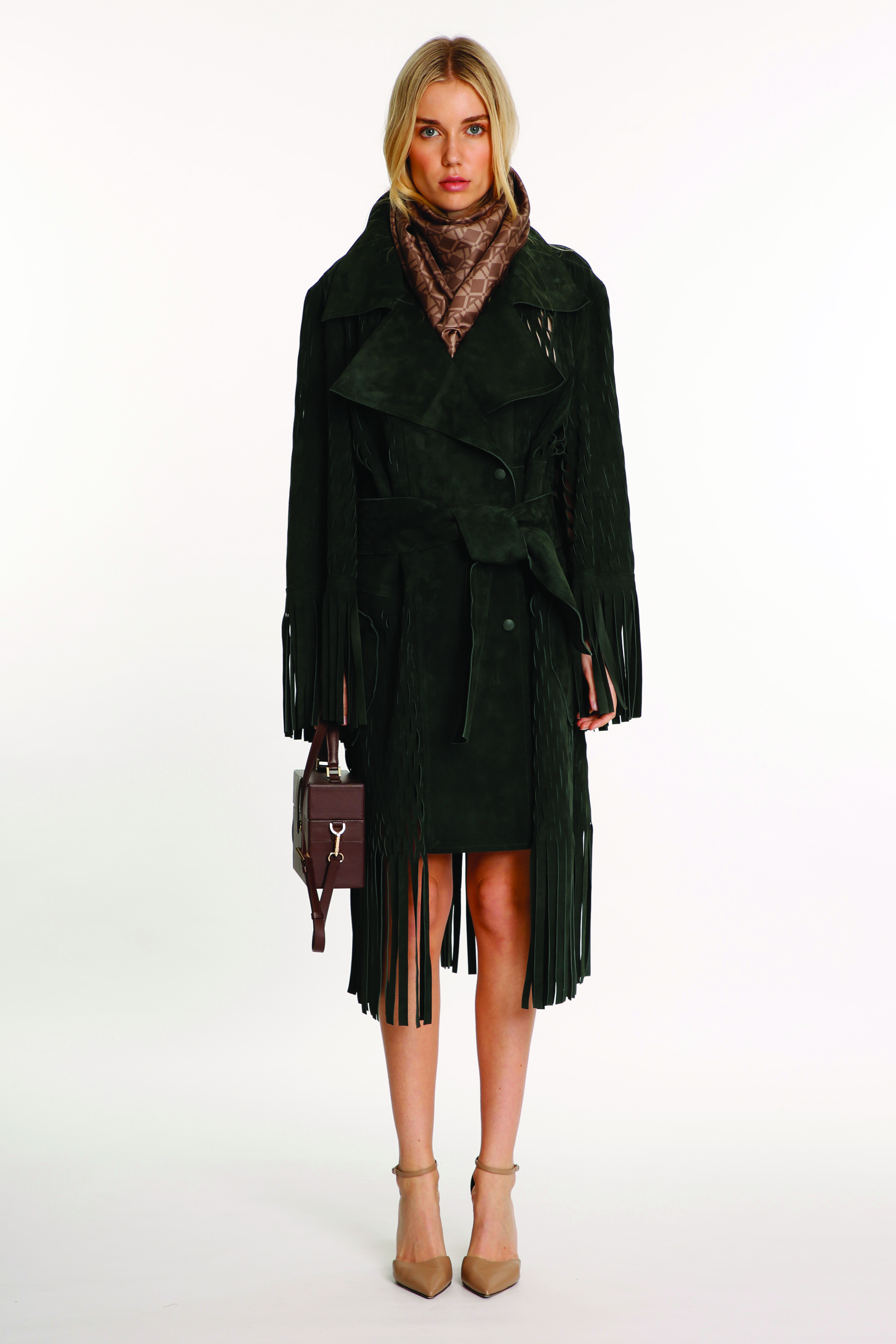 The collection is composed of a variety of re-designed contemporary classics, comprised of the brand’s signature elaborately worked leather, as well retro-inspired ruffles, modernized corsets, and revisited fringed cut-work outerwear. The collection’s color palette is drawn from the tranquility of nighttime, with tones of midnight darkness, velvety twilight hues, and shades of the rising sun over the horizon.