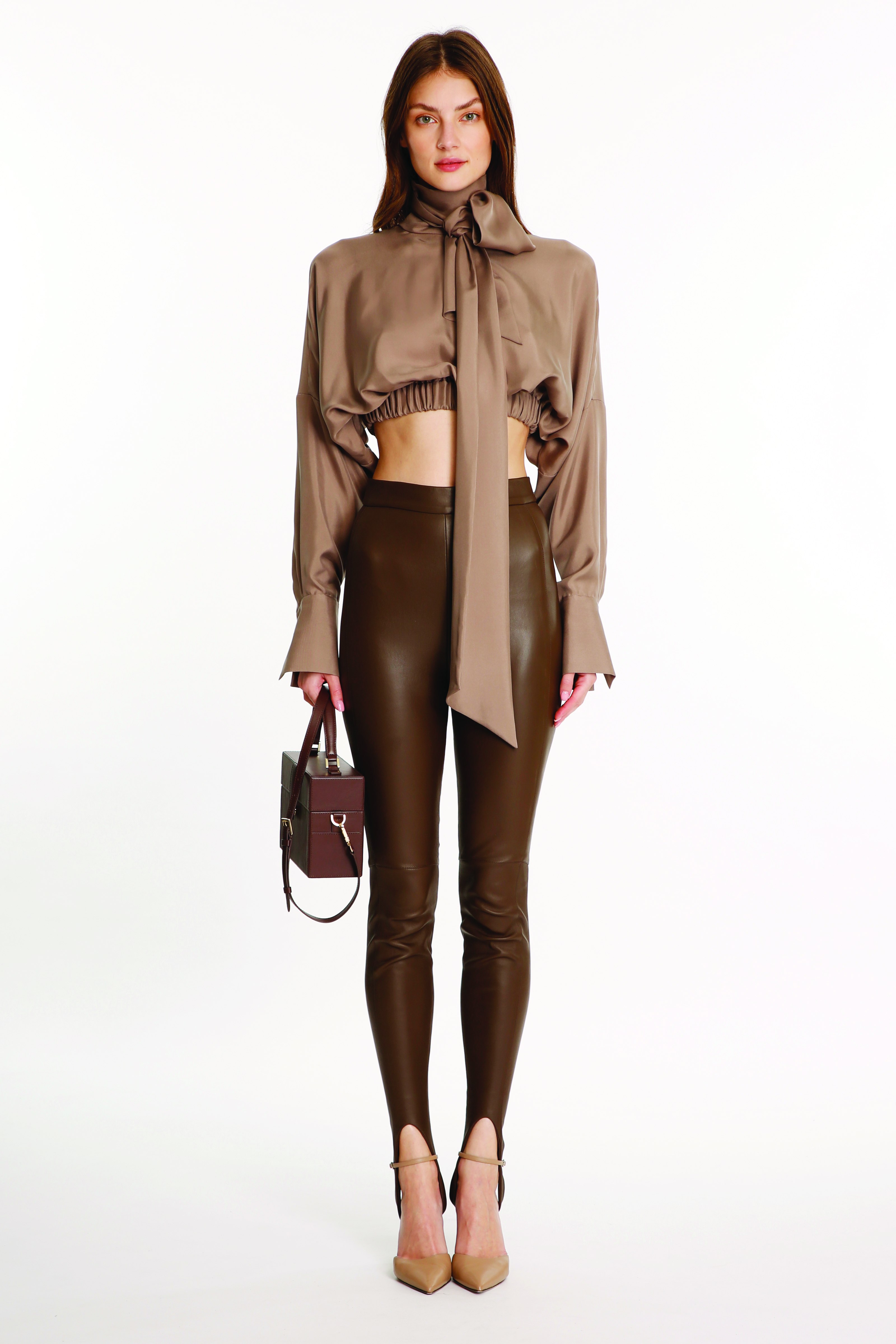 As part of a continued partnership with Maison Michel Paris, the collection includes two Kristina Fidelskaya hats made by Maison Michel Paris, the “Bibi” and “Brigitte”, in leather, both available in black, and white.