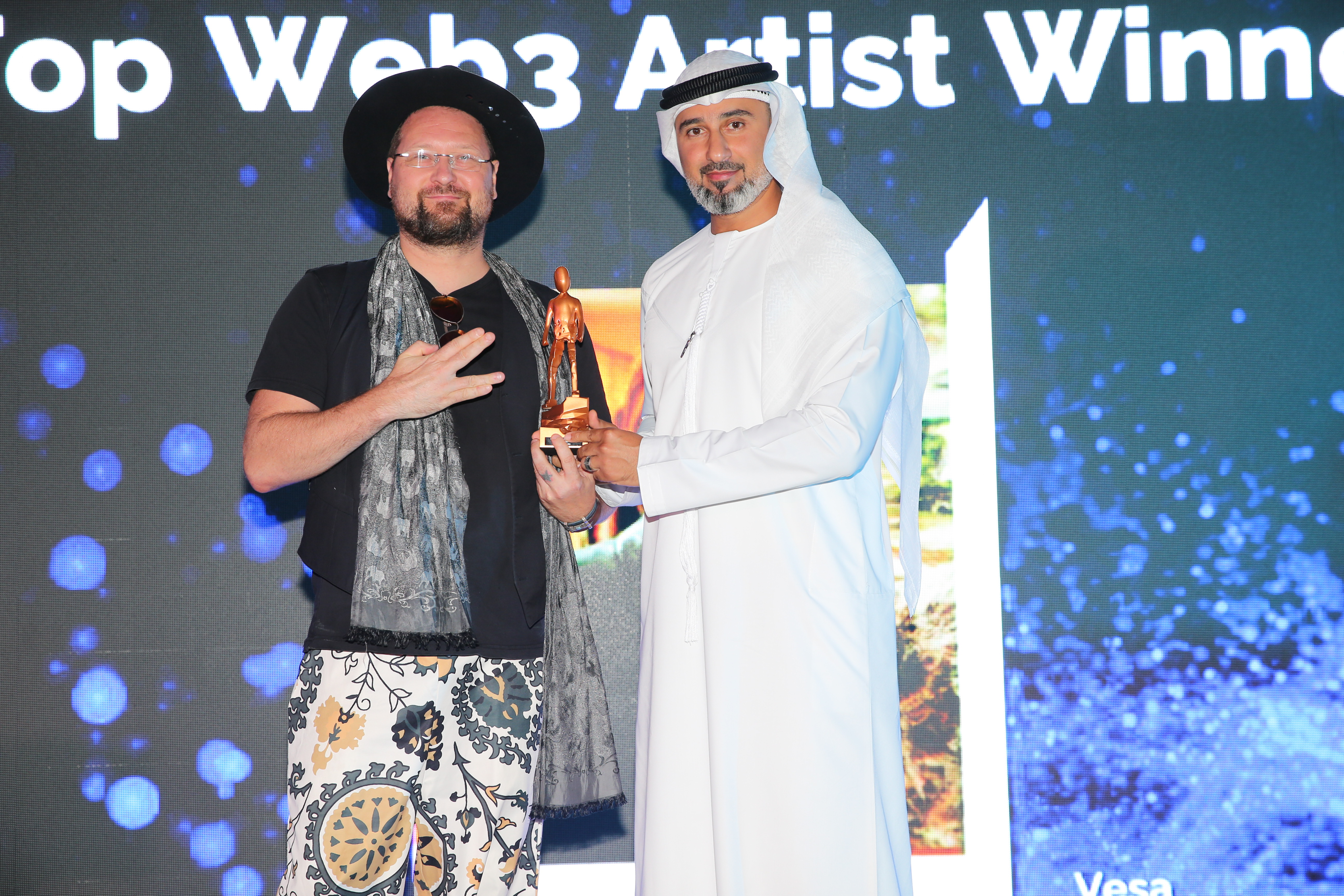 The panel discussions were followed by our Awards ceremony with the awards being designed by renowned French NFT artist : Patrick Moritz. All prominent personalities in the Metaverse space attended the Awards ceremony and the winners were announced during the gala event.