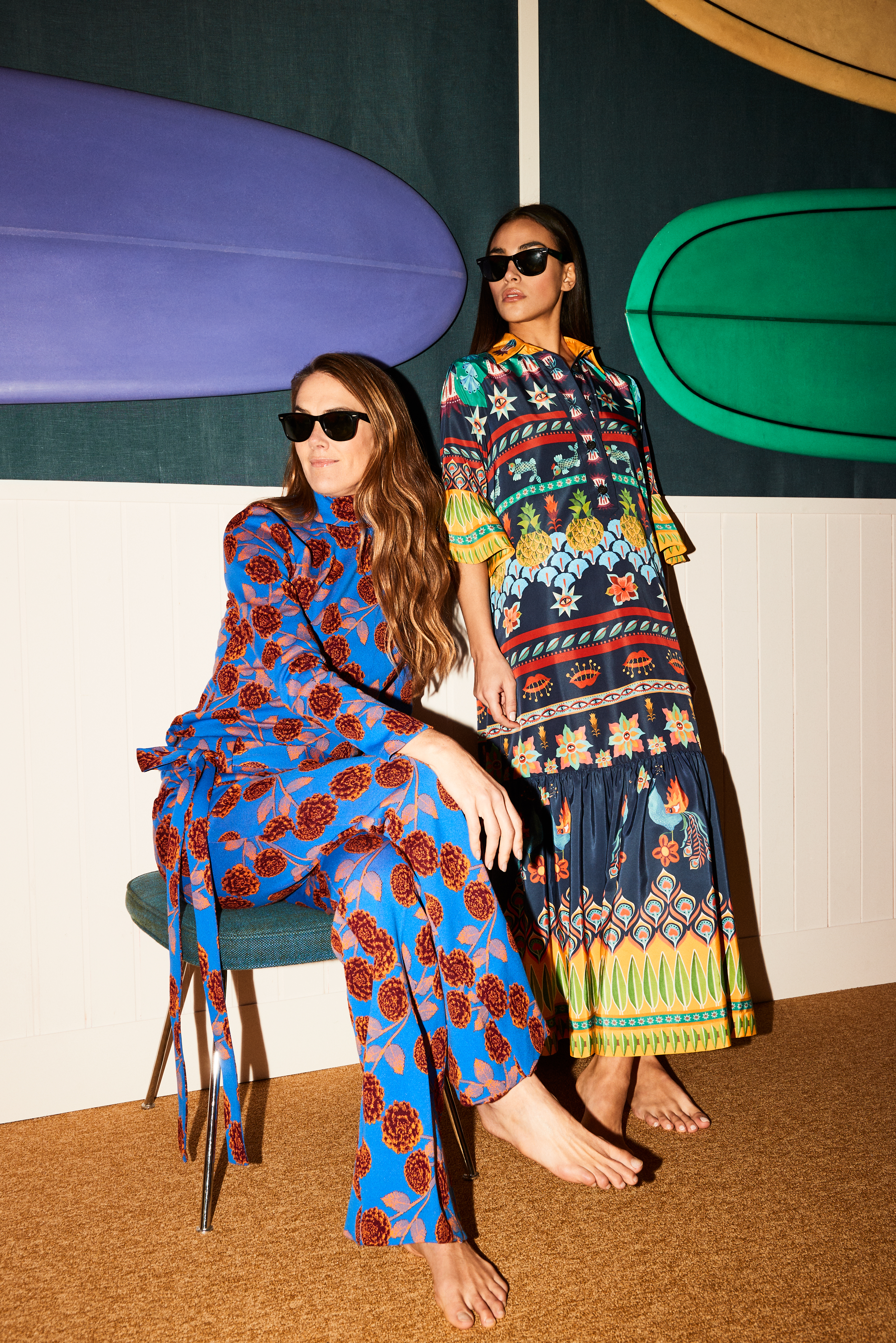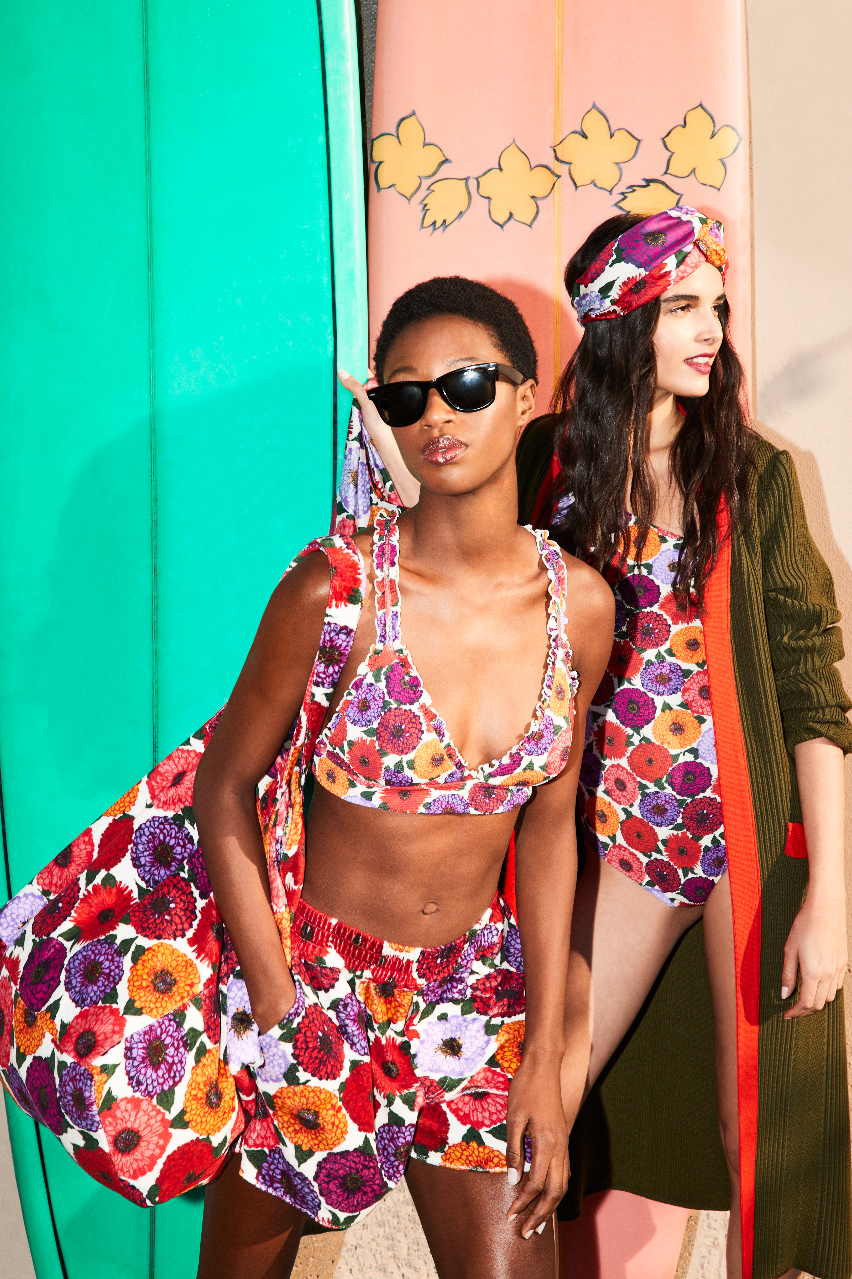 The grandeur of the Mediterranean requires a coastal kit to match, which La DoubleJ delivers in dazzling updates on retro prints, like Tripping and Eden, featured across our complete swimwear range and casual daytime sets. Our silky Roller Shorts and Jacket lay easily over our new Goddess bikini top for cool-kid beach chic. New metallic Italian leather Gladiator Sandals and faux-shearling Precious Slides are as at home by the pool as they are on the promenade, while the go-everywhere, do-everything bag of the Summer is the new hand-woven raffia and silk Celebration Pouch.