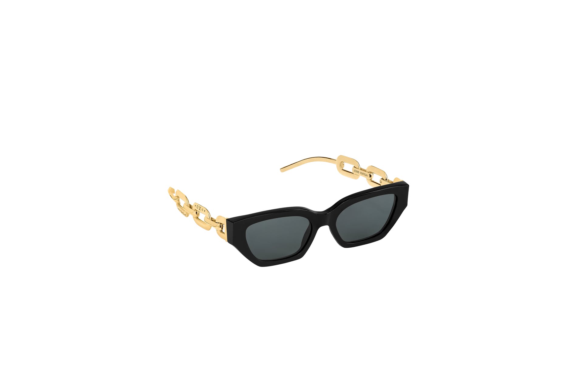 With an up-to-the-minute chunky square or cat-eye shape, three new pairs of sunglasses offer this season’s take on the constantly shape-shifting Louis Vuitton design codes. The temples on the cat-eye model are formed from chain links inspired by leathercraft. The other two pairs toy with variations of the LV signature to make a feisty statement, either through Monogram acetate frames or with metallic hinges showcasing the LV Circle.