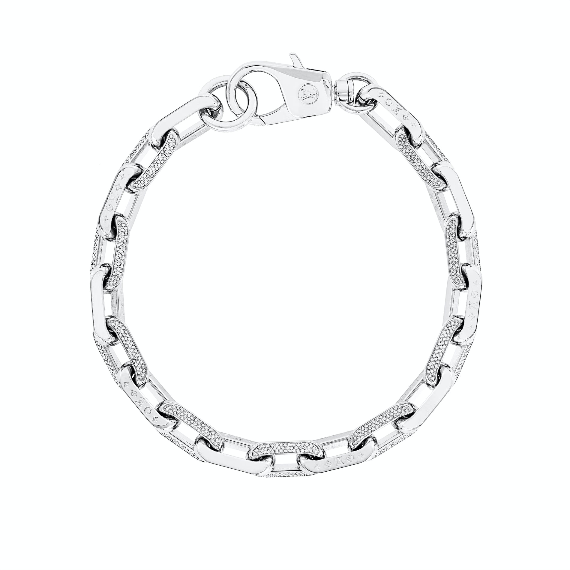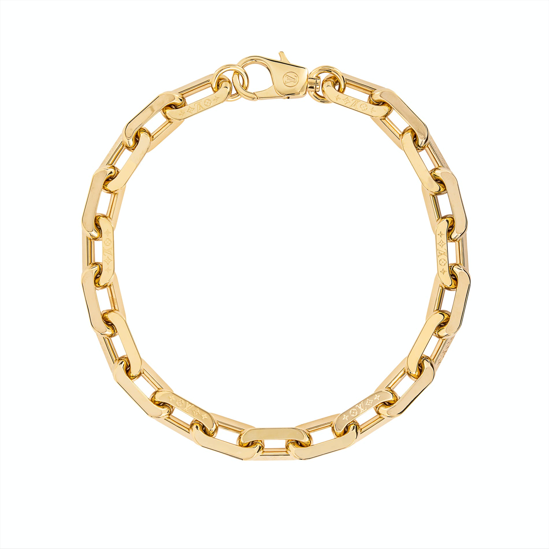 A strong presence in the Spring-Summer 2021 fashion show, the chain made of large links engraved with the Monogram flower now makes its way onto fashion jewellery. Worn as a bracelet, necklace or earrings, it comes in gilt, silvered, or diamanté-set brass.