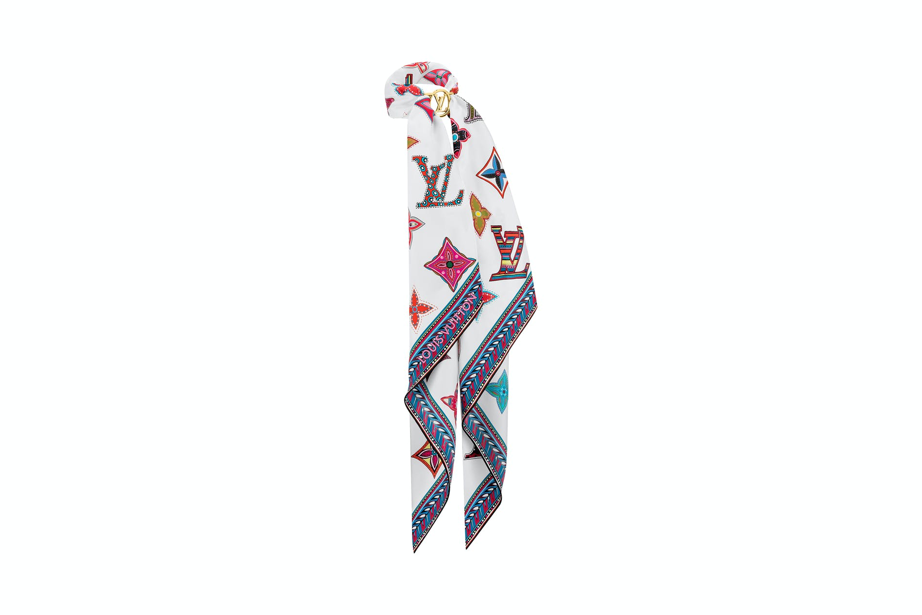 There are a variety of ways to accessorise Louis Vuitton’s silk squares. Loosely tied around the neck, cinched around the waist as a belt, or bandana-style, silk squares as well as the new LV ENVY scarf offer a versatile look.