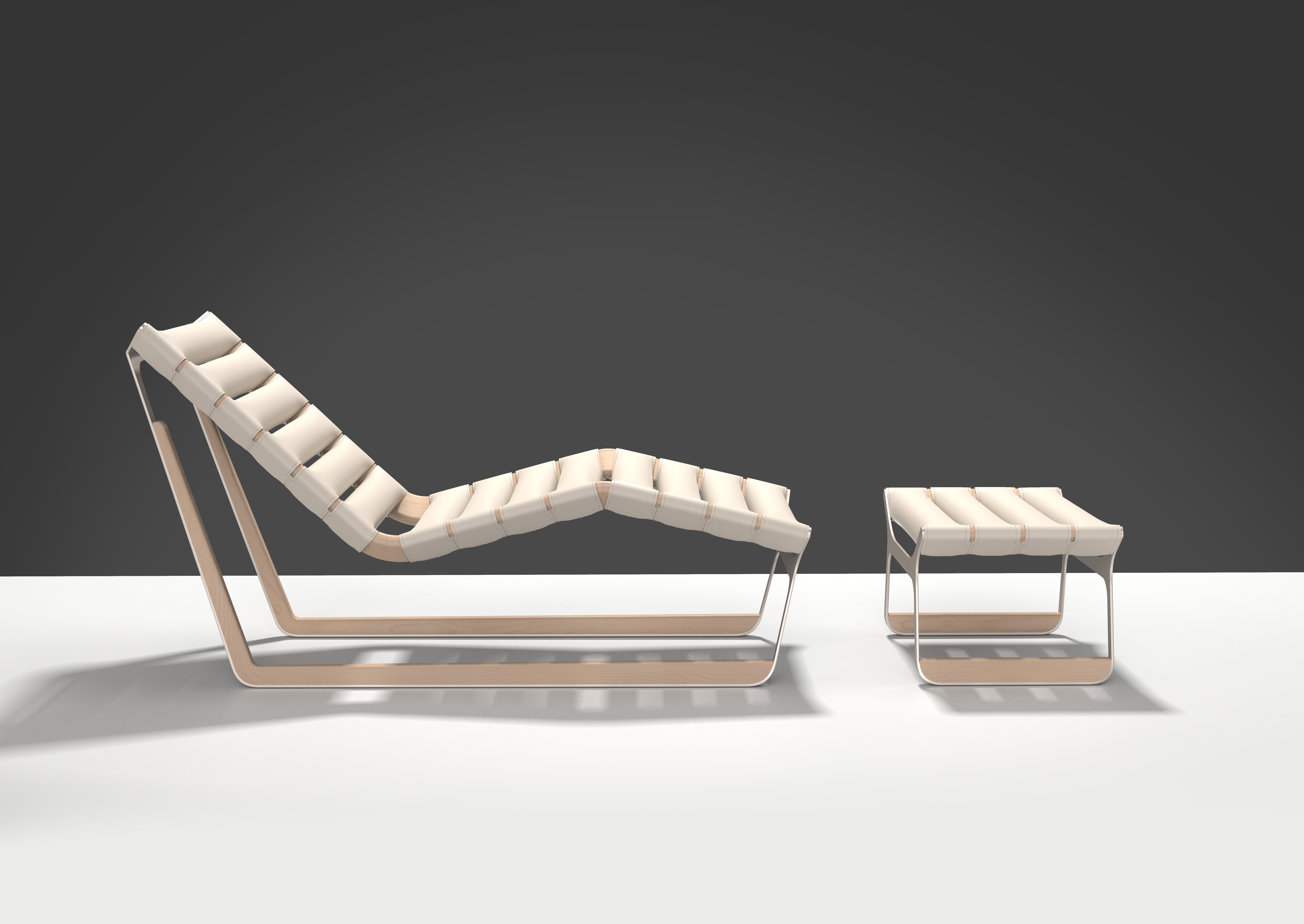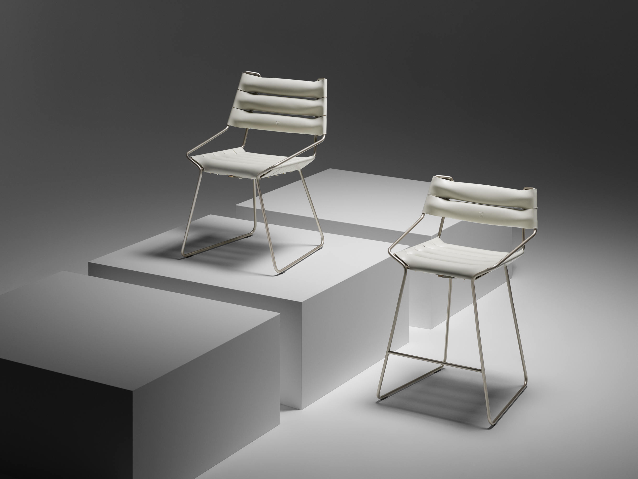 Five new Objets Nomades will be unveiled in Milan. The first sees Swiss design studio Atelier Oï, which has been working on Objets Nomades since the collection’s foundation, introduce variations of its much-loved Belt Chair. The Belt Bar Stool and the Belt Lounge Chair feature a similar seat made of strips of rich Louis Vuitton leather held in place with brass buckles that recall those used on the Maison’s bags. These are joined by the Belt Side Stool, a low stool with a delicate elegant metal and wood frame. The fourth new Objet Nomade is a four-seater version of the Campana Brothers’ Bomboca, a modular sofa named after confectionery served at wedding and children’s parties in Brazil. Inspired by cloud shapes, it has eleven removable fabriccovered cushions arranged to fit into its rigid, leather-covered shell. The final new Objet is a special outdoor version of Raw Edges’ Cosmic Table, whose infinity shape carbonfibre base is treated with an enamelled or weathered-metal-style finish to complement its beautiful glass top.