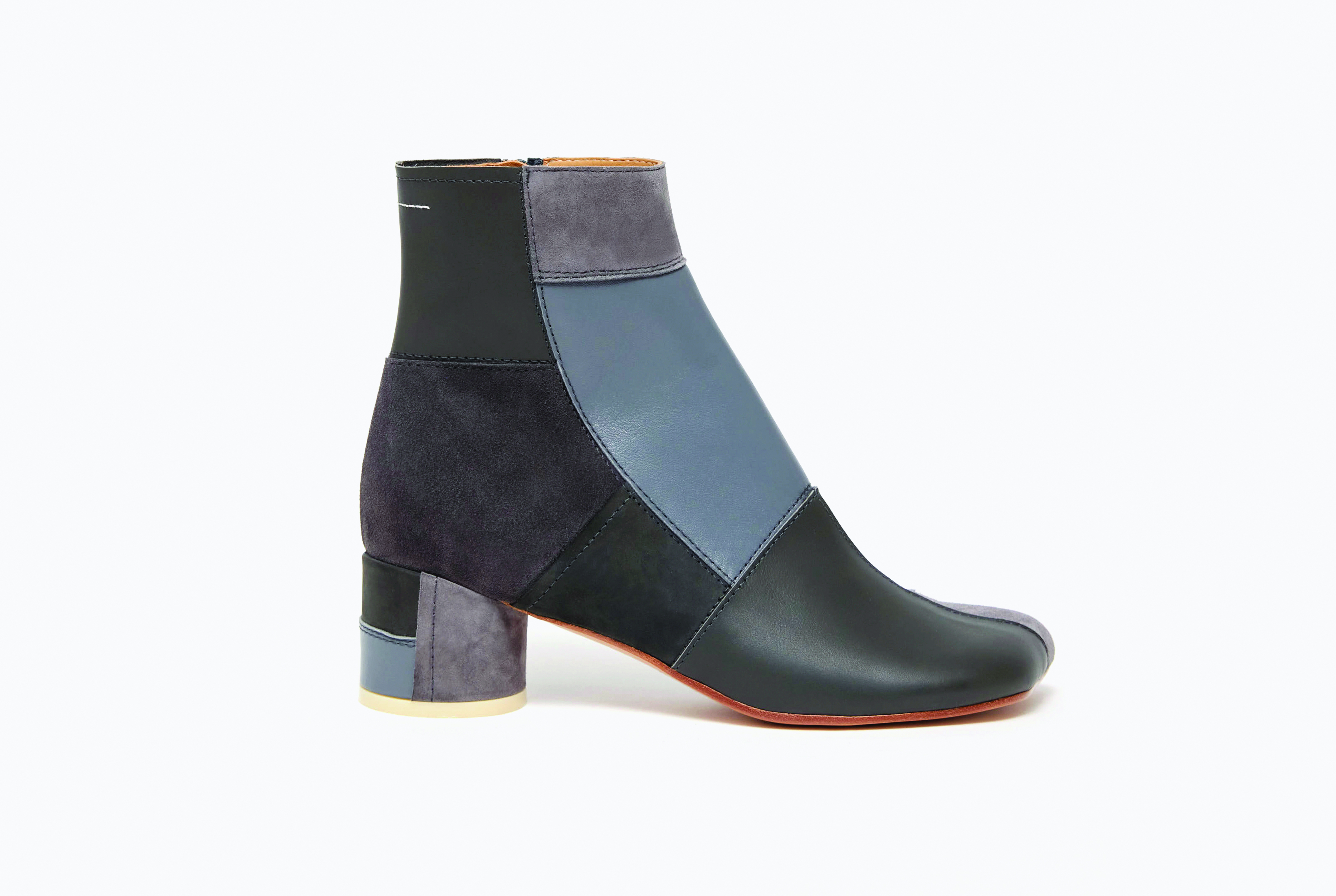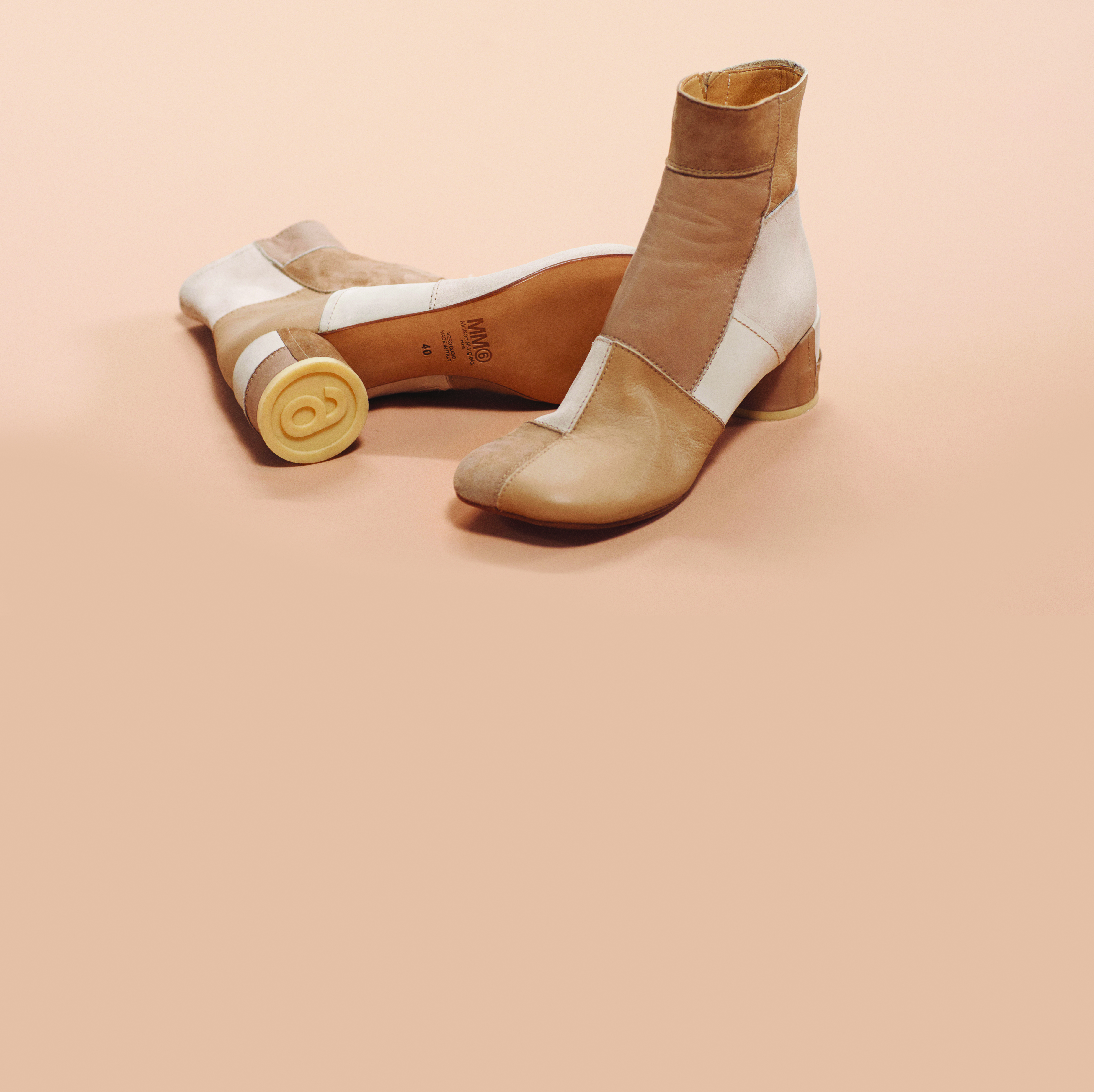 Created during the lockdown, when access to the wealth of materials typically available to work was dramatically curtailed, the collection is a meditation on unexpected creativity to be found in the ostensibly everyday. The pieces that most faithfully convey this are to be found in the capsule of up-cycled patchwork MM6 icons, including the distinctive Japanese bag and the cylindrically-heeled 6 boot.