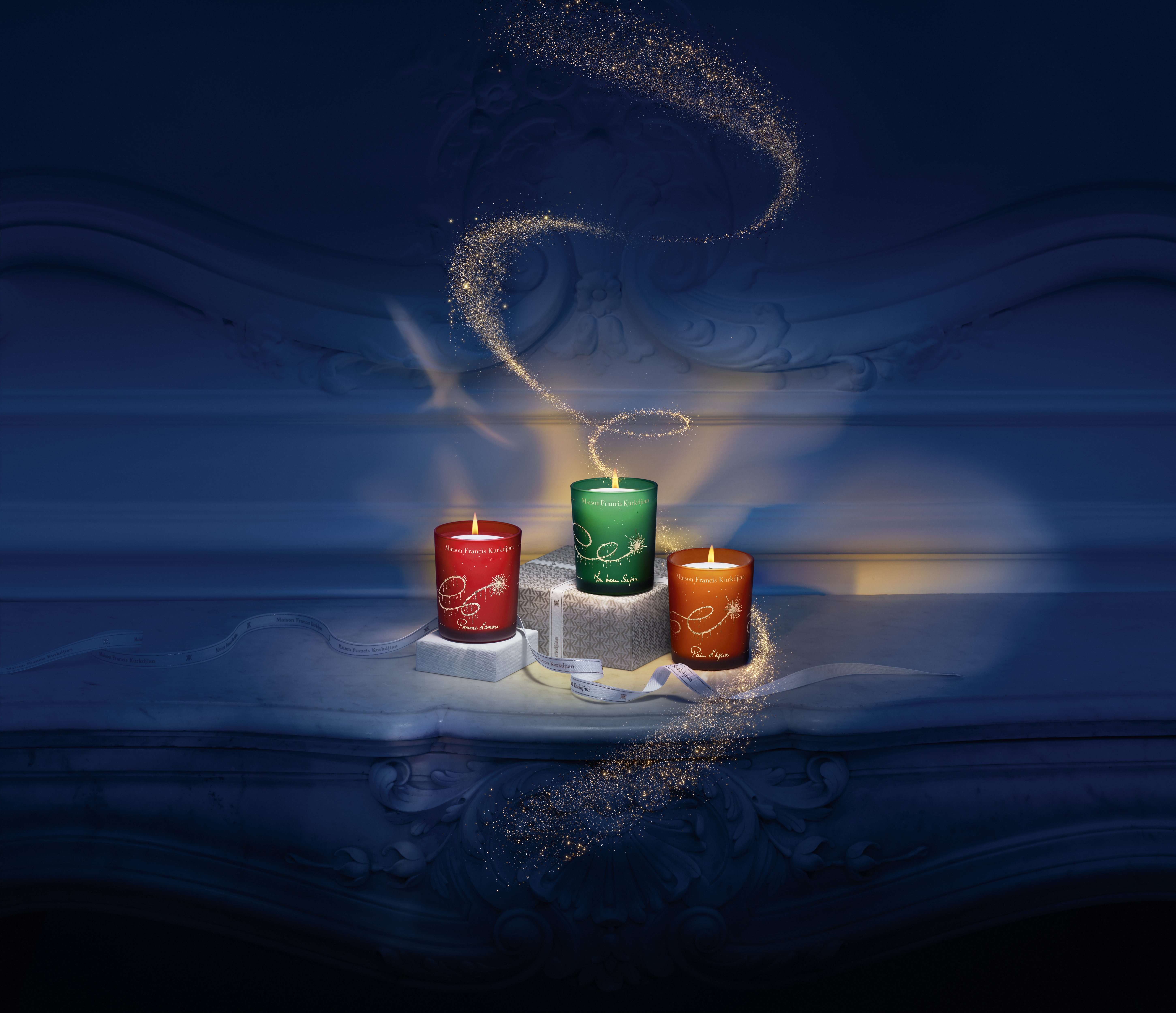 Maison Francis Kurkdjian re-edits its festive candle trio, creating three magical atmospheres reminiscent of childhood. Mon beau Sapin, whose subtle resinous fragrance evokes a walk in the forest; the comforting