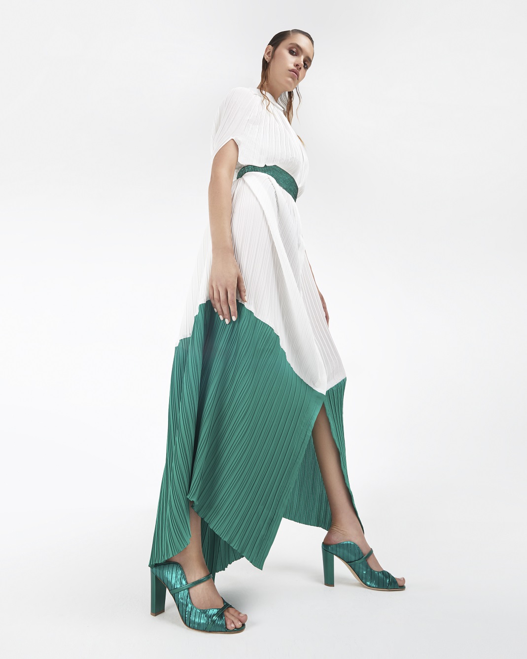 Pleats are prevalent in Ayad’s collection and translate into the shoes, as does a little of sparkle that goes a long way, making the entire collection versatile for day or night.