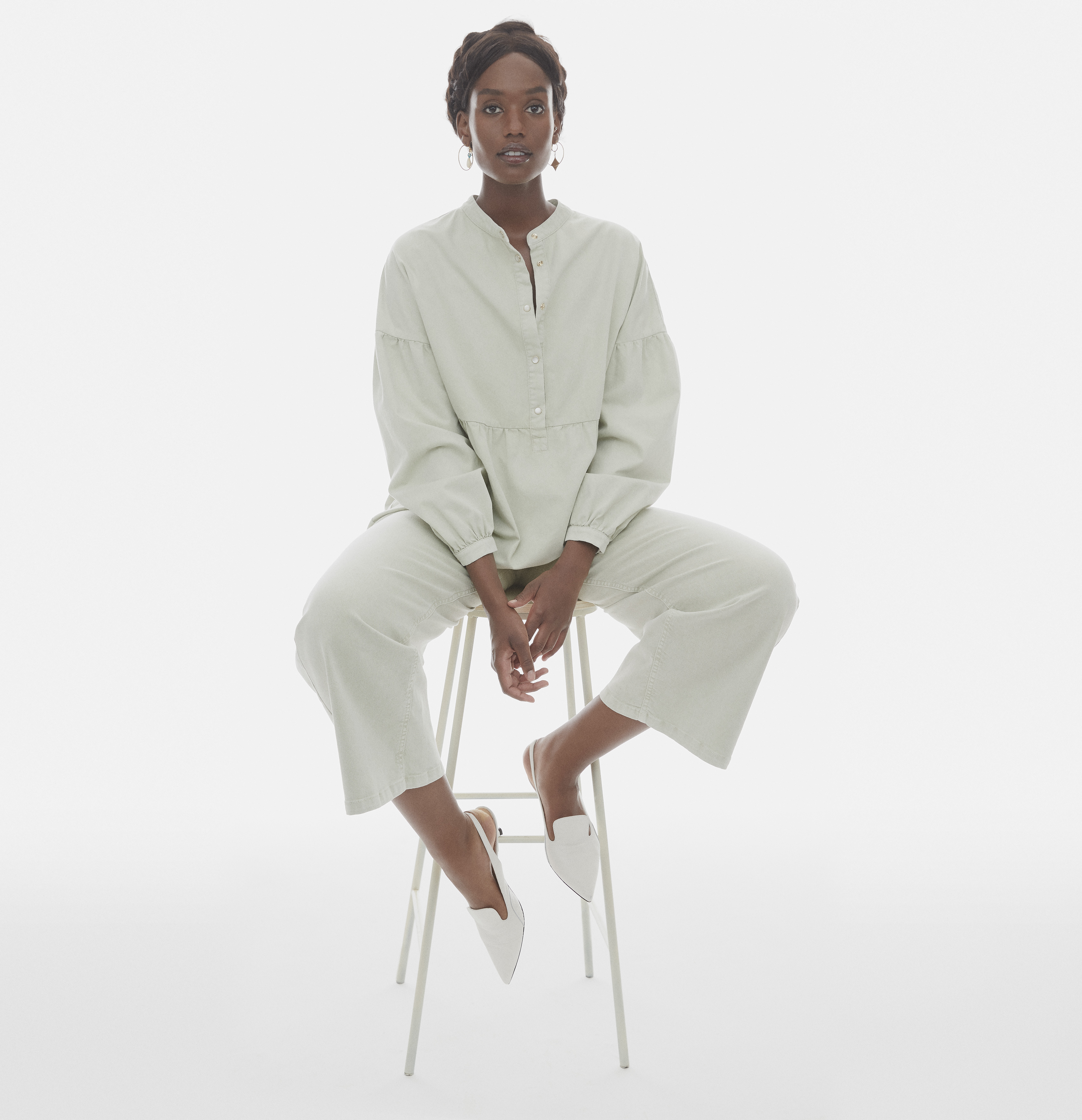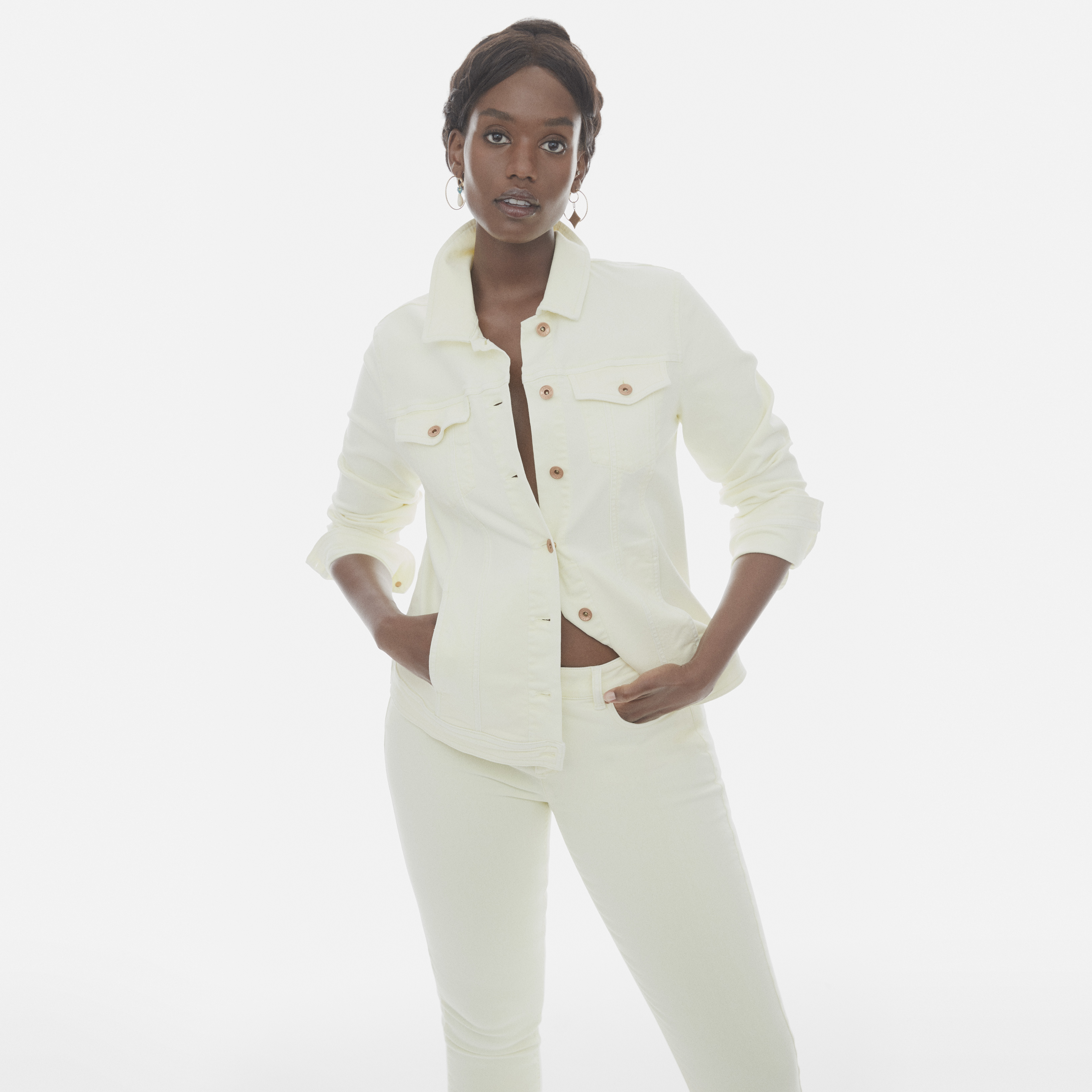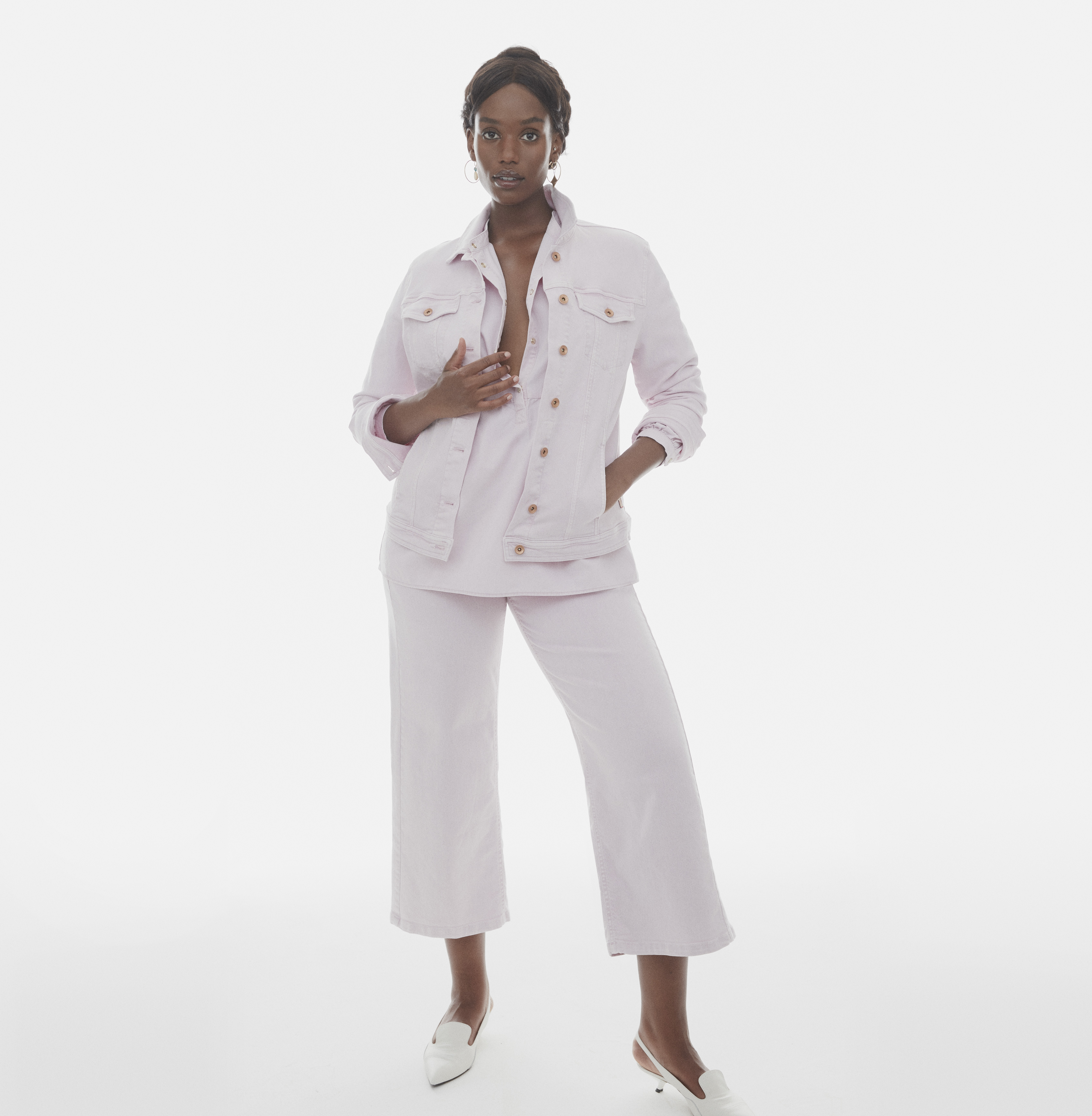 Thanks to the use of all-natural dyes, the jeanswear range is brimming with pastel colours, including soft shades of yellow, sage green and light pink.