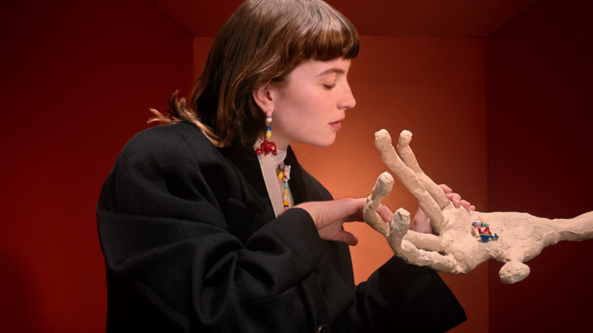 Taking the collaboration to a deeper level still, as well as creating the jewellery, from design to packaging, Djurberg and Berg are responsible for the artistic direction of the accompanying campaign. Photographed by Julien Martinez Leclerc, this introduces the actor Isadora Bjarkardóttir Barney to the Miu Miu universe. She follows in a long line of emergent cross-disciplinary Miu Miu muses, united in their difference – in their passionately individual stance. Shot from extreme perspectives, the jewellery is seen through her eyes one moment, through ours the next and through those of otherworldly creatures the next – those birds again and an unfeasibly large skeletal hand. This reflects the intimate nature of the product while exaggerating its proportions in a way that is deliberately disorienting. Are the creepy interlopers giving the campaign’s star the jewellery or taking it away from her? No one will ever know.