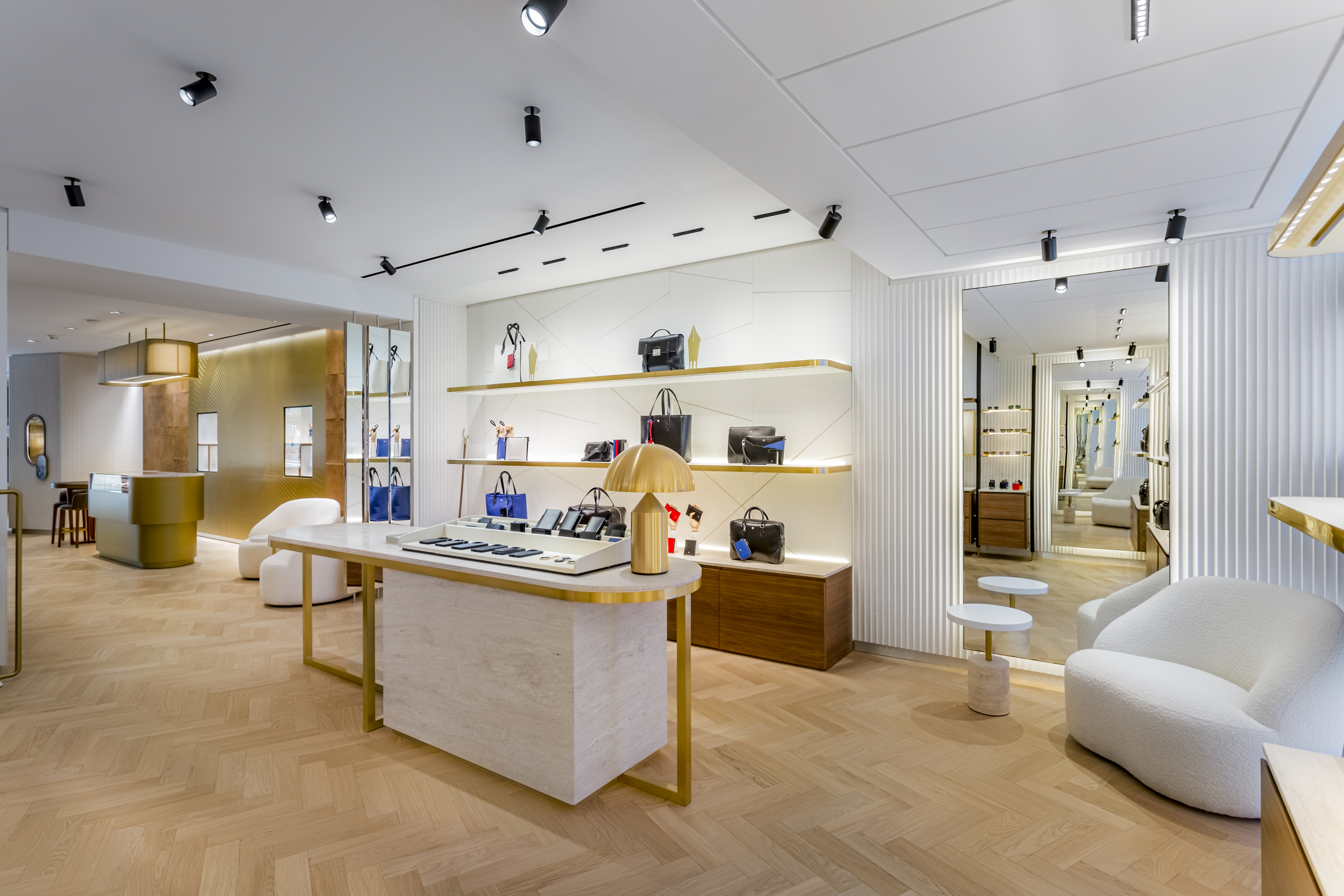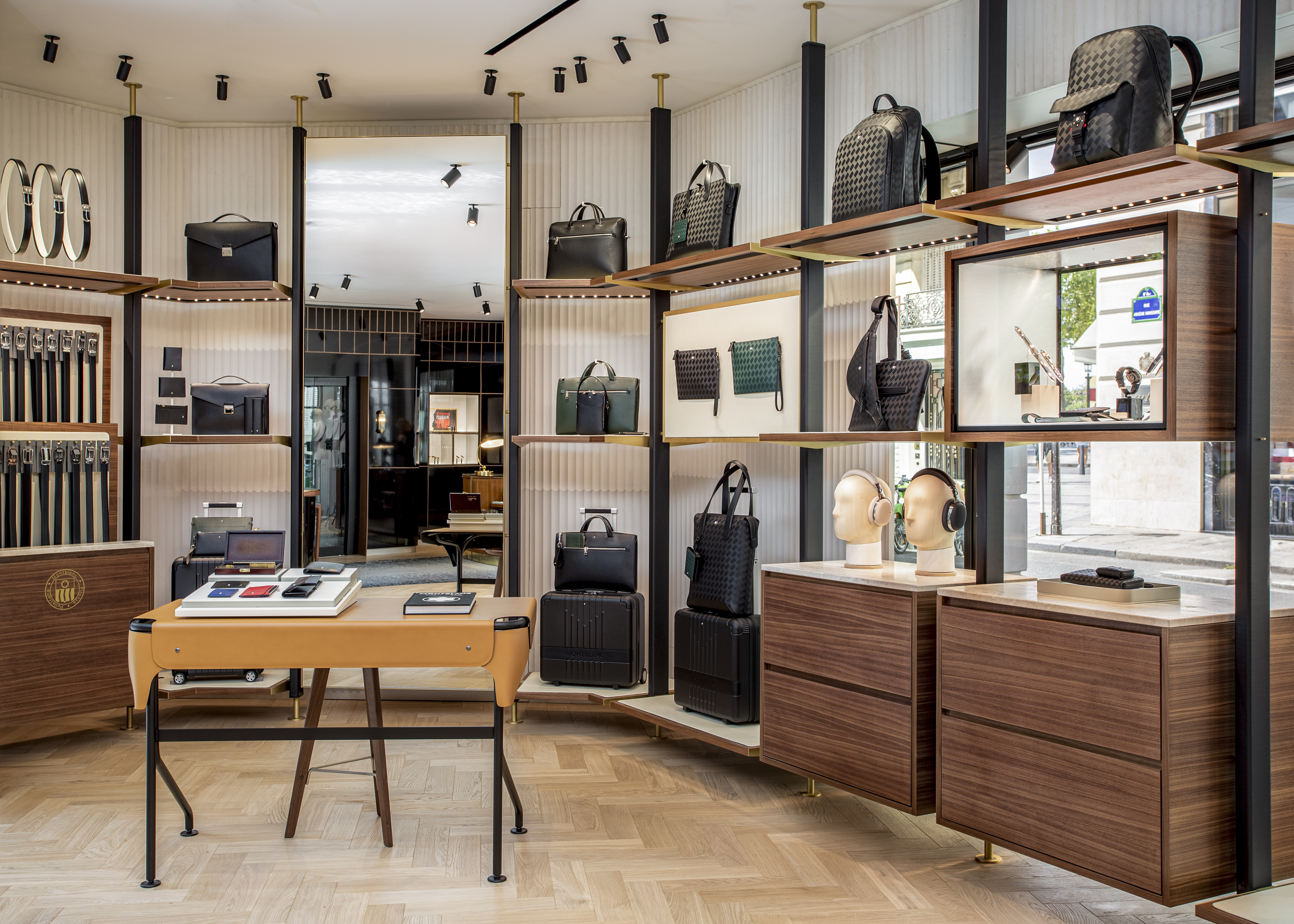 La Bagagerie: At the back of the store is a contemporary and dynamic place dedicated to leather goods. In a sophisticated and welcoming environment, the leather pieces are magnified in a special display featuring a large counter in elegant Travertino marble. A seating area gives customers an opportunity to unwind and enjoy the beauty of Montblanc leather craftsmanship, while a mobility area is dedicated to trying out travel trolleys.