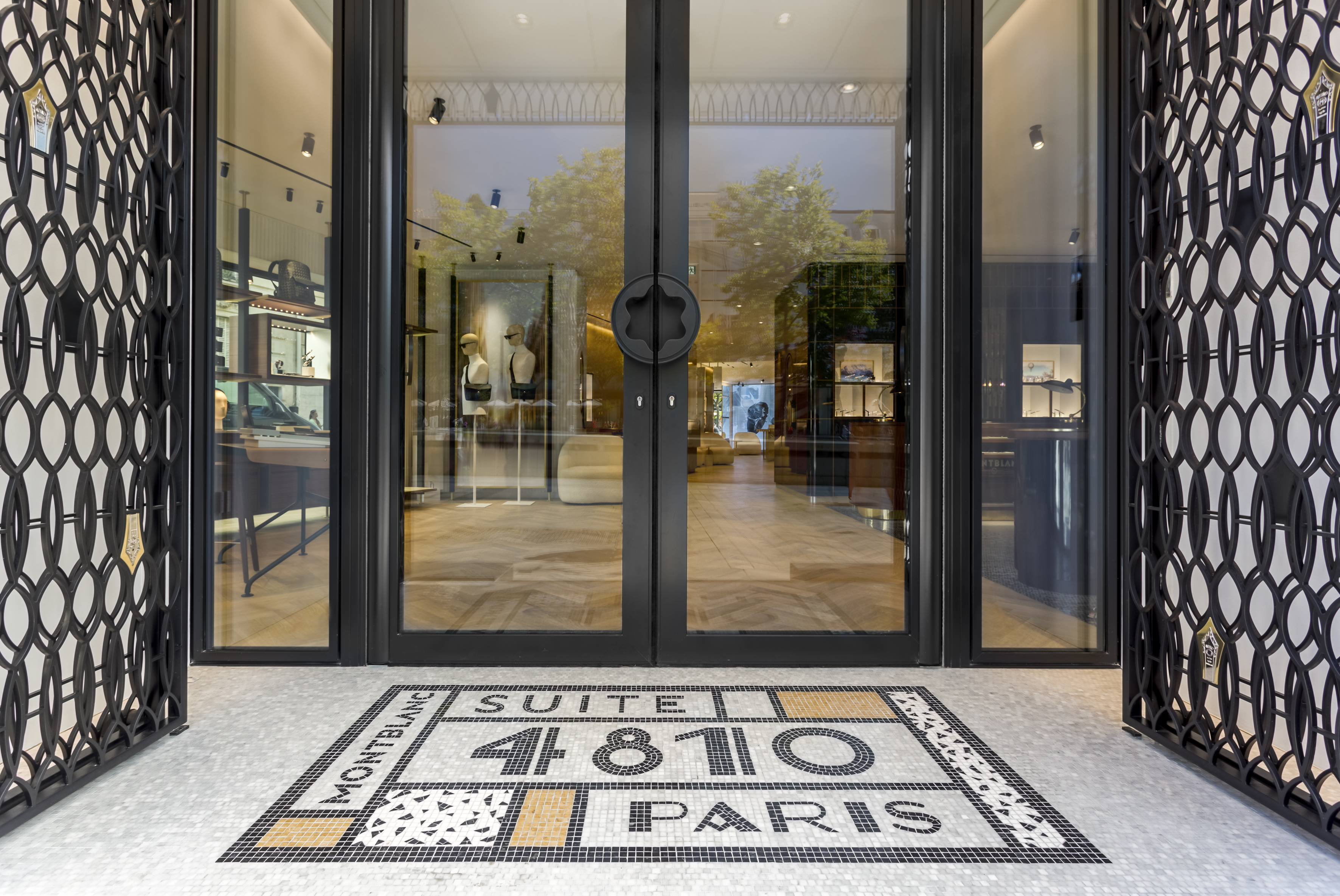 The Grand Entrance: Before even entering the building, a magnificent grille featuring the design of a Montblanc nib and a mosaic on the floor forming the name of the boutique Montblanc Suite 4810 Paris welcomes guests. 4810 is the height of the Montblanc in metres at the time the Montblanc brand came into existence over 115 years ago, a number used to underscore the Maison’s commitment for reaching the summit of craftsmanship and design excellence with each of its products.