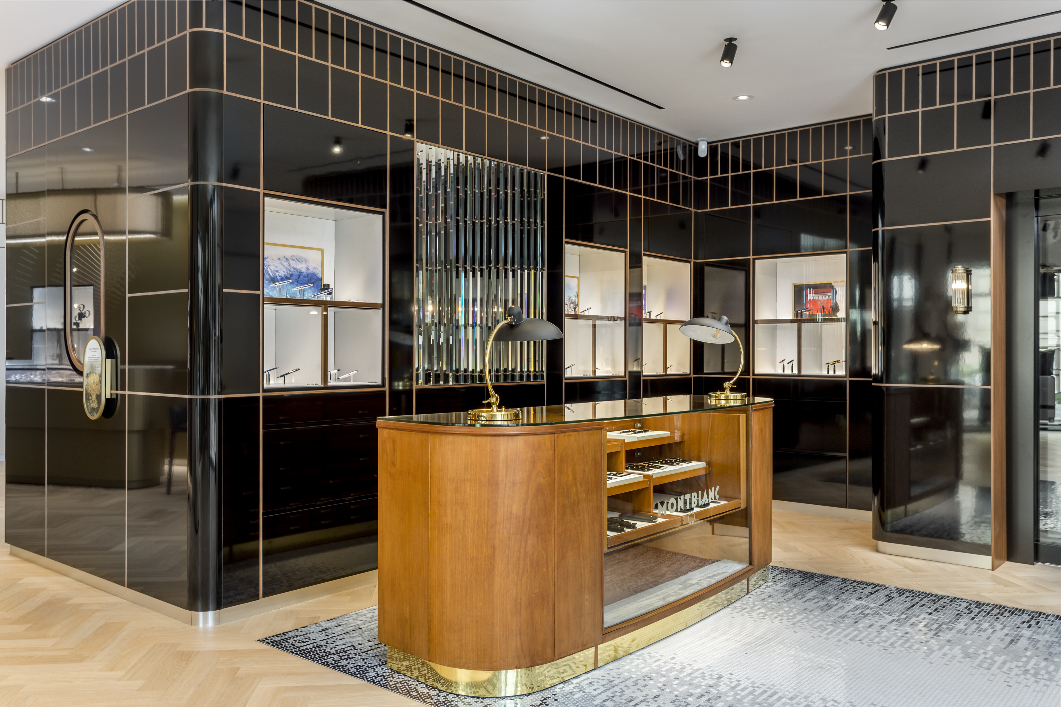 The concierge area: Inside this creative place of expression for the brand, guests are invited to discover what makes the soul and the whole universe of Montblanc across product categories as well as new capsule collections. At a small desk, an expert “concierge” is on hand to personalize accessories, paint on leather or even advise on writing techniques and calligraphy.