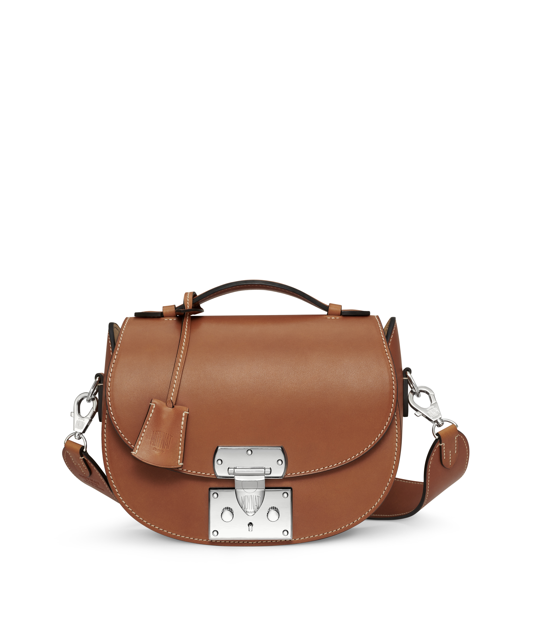 With its cross-body leather strap, the curved Le Flori contains a tribute to Maison Moynat’s origins as a Parisian trunk-maker. The detail of the top-handle, and the sensual engineering of the lock mechanism are inspired by studying the details of trunks made for women in the 1900s. Surprisingly, the removable shoulder-strap is also a contemporary nod to Pauline Moynat’s empathetic design for women on the move. Long ahead of its time in 1903, Moynat was advertising women’s handbags on long straps, to wear hands-free.