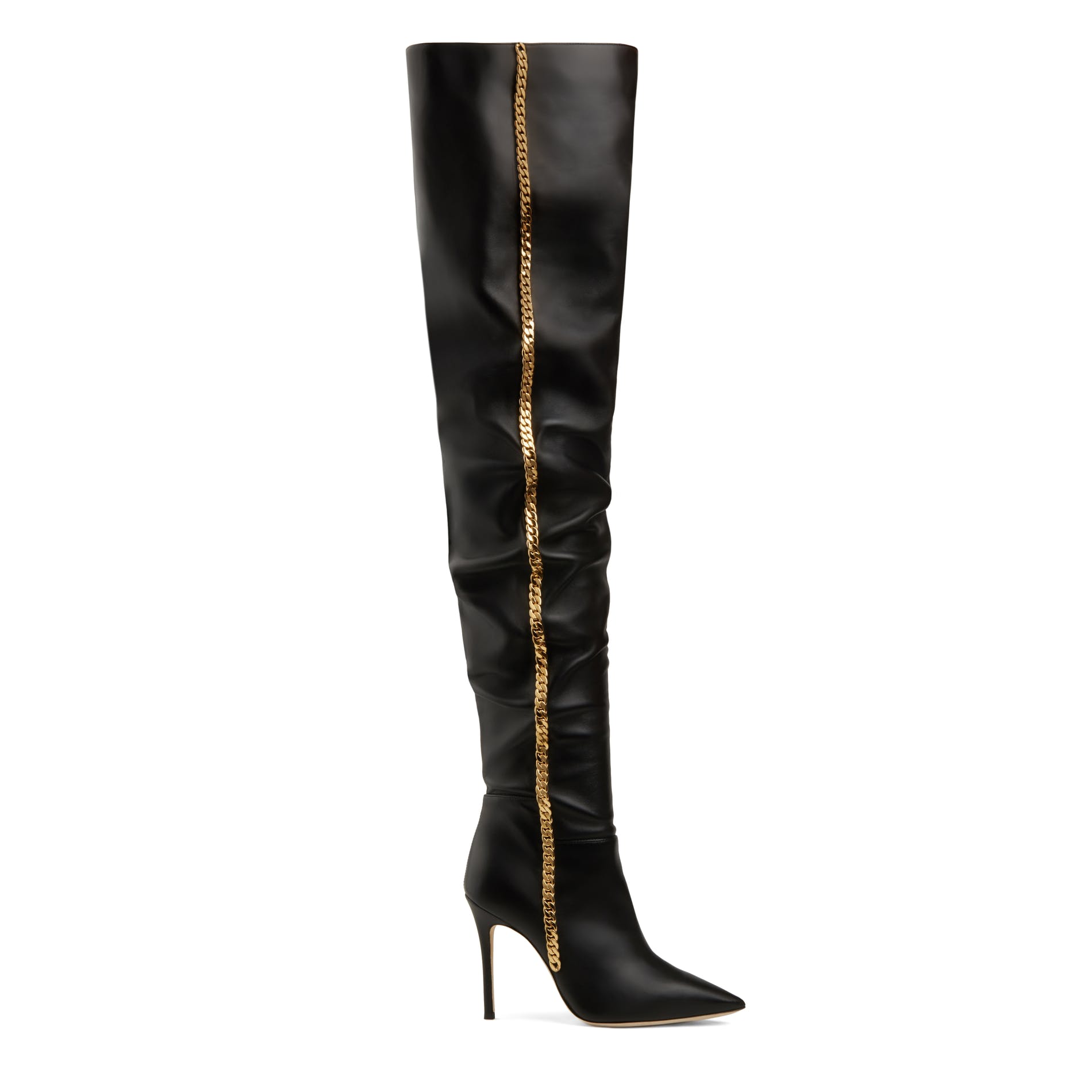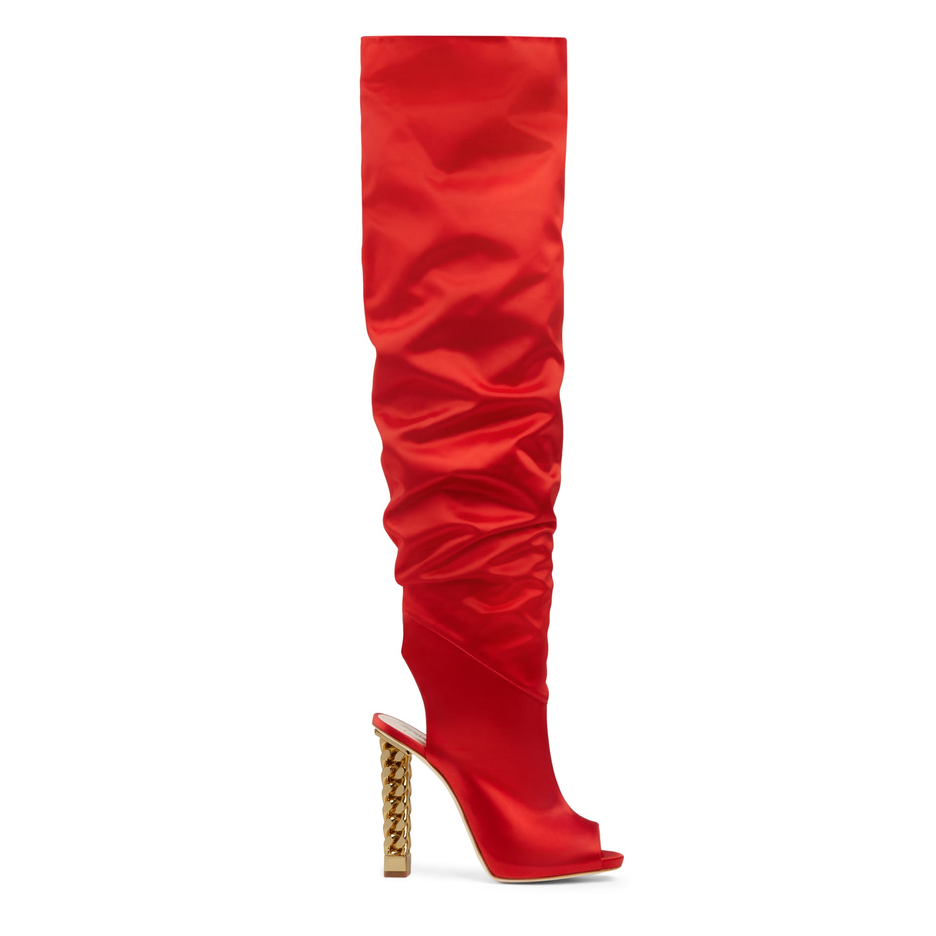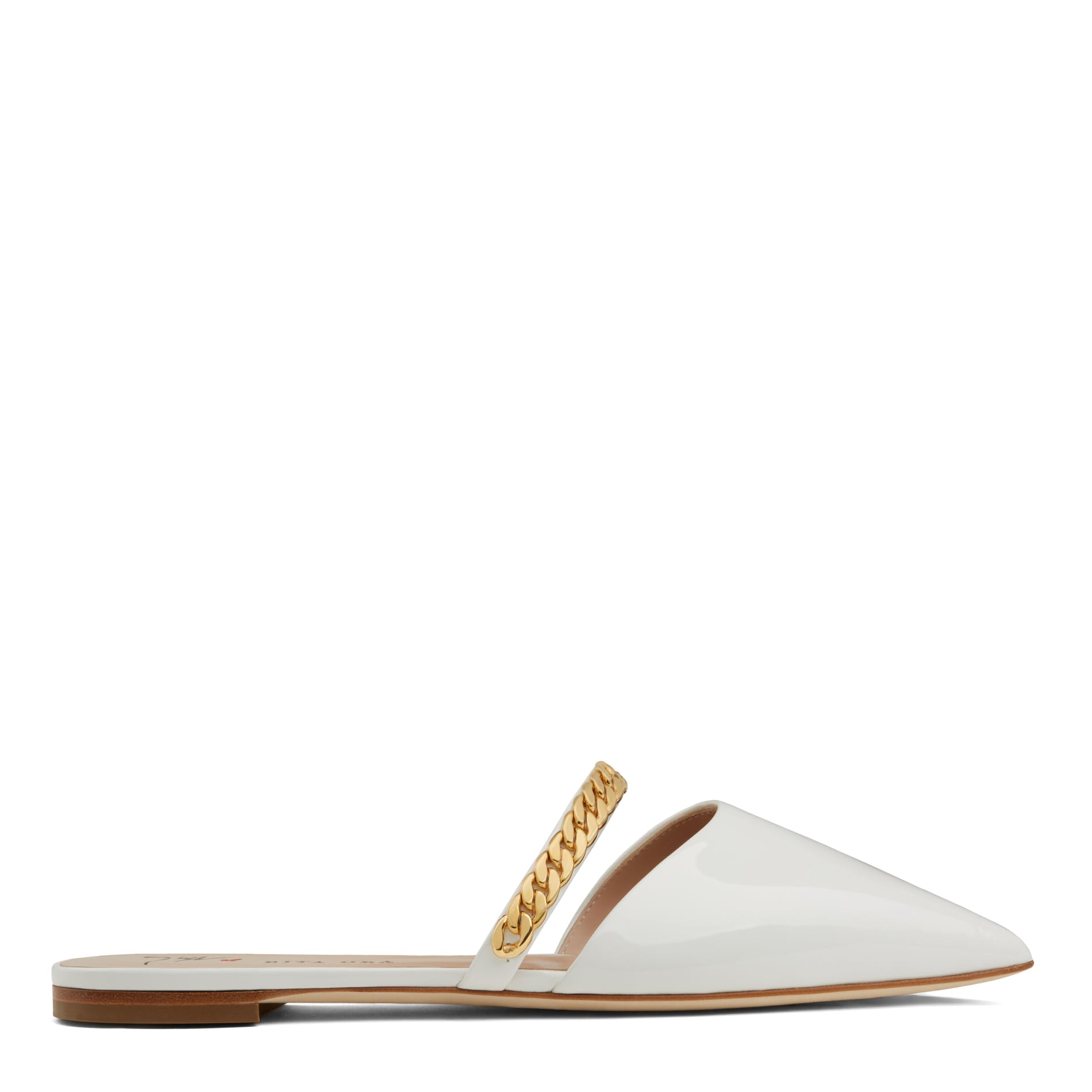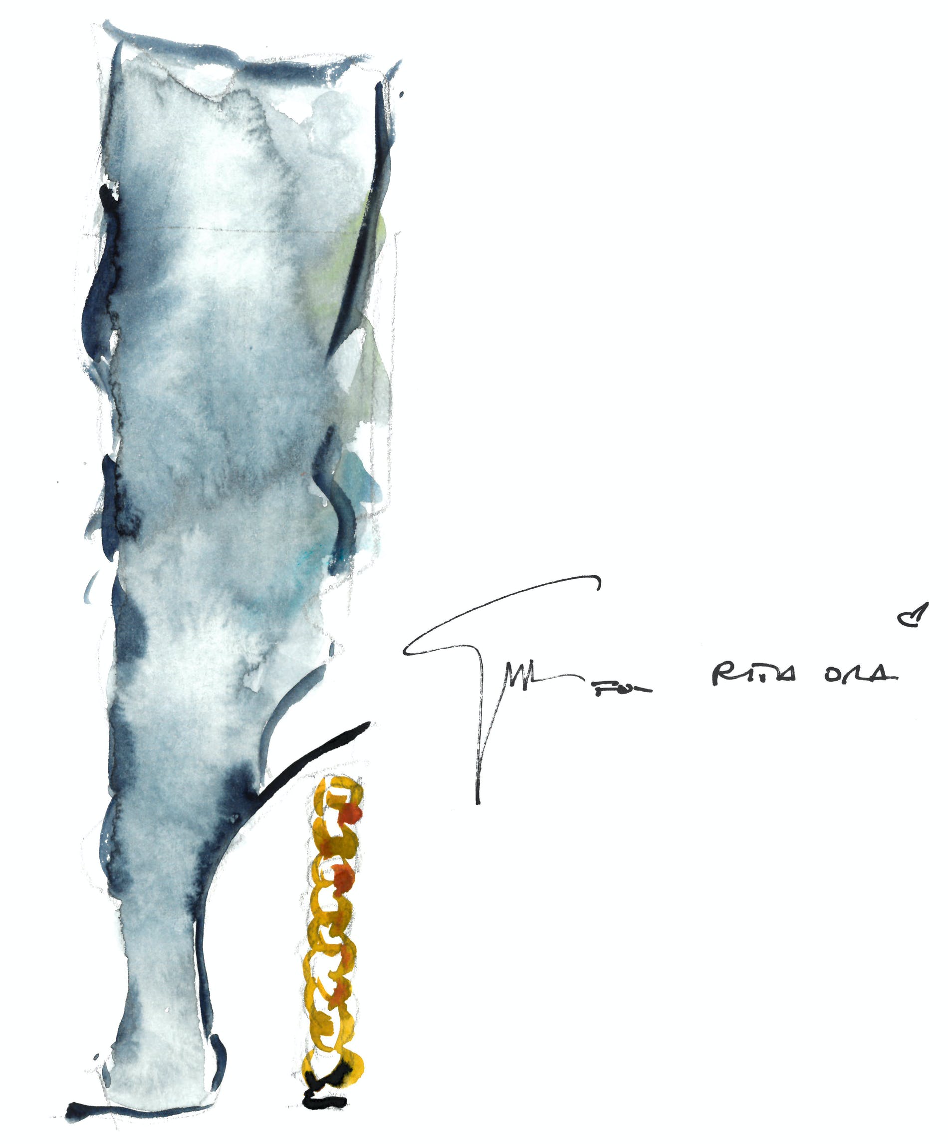 ‘I wanted to create a series of styles that represents the three different facets of Rita: glamour, effortlessness and cool. Music has always been at the center of my design ethos, and has always been my most powerful muse. The music world is an endless source of inspiration and Rita, with her extraordinary mix of sensuality and strength, proved to be a very powerful muse too. So we created knock-out stiletto sandals, to-the-knee, peeptoe boots as well as modern slip-on flats, in luxurious materials, like polished leather, textured suede and rich silk-satin. But the defining element of the collection is the Cuban Link chain, which is my favorite type of jewellery. The design is immediate, graphic and strong and it resonated perfectly with Rita’s personality and style.
