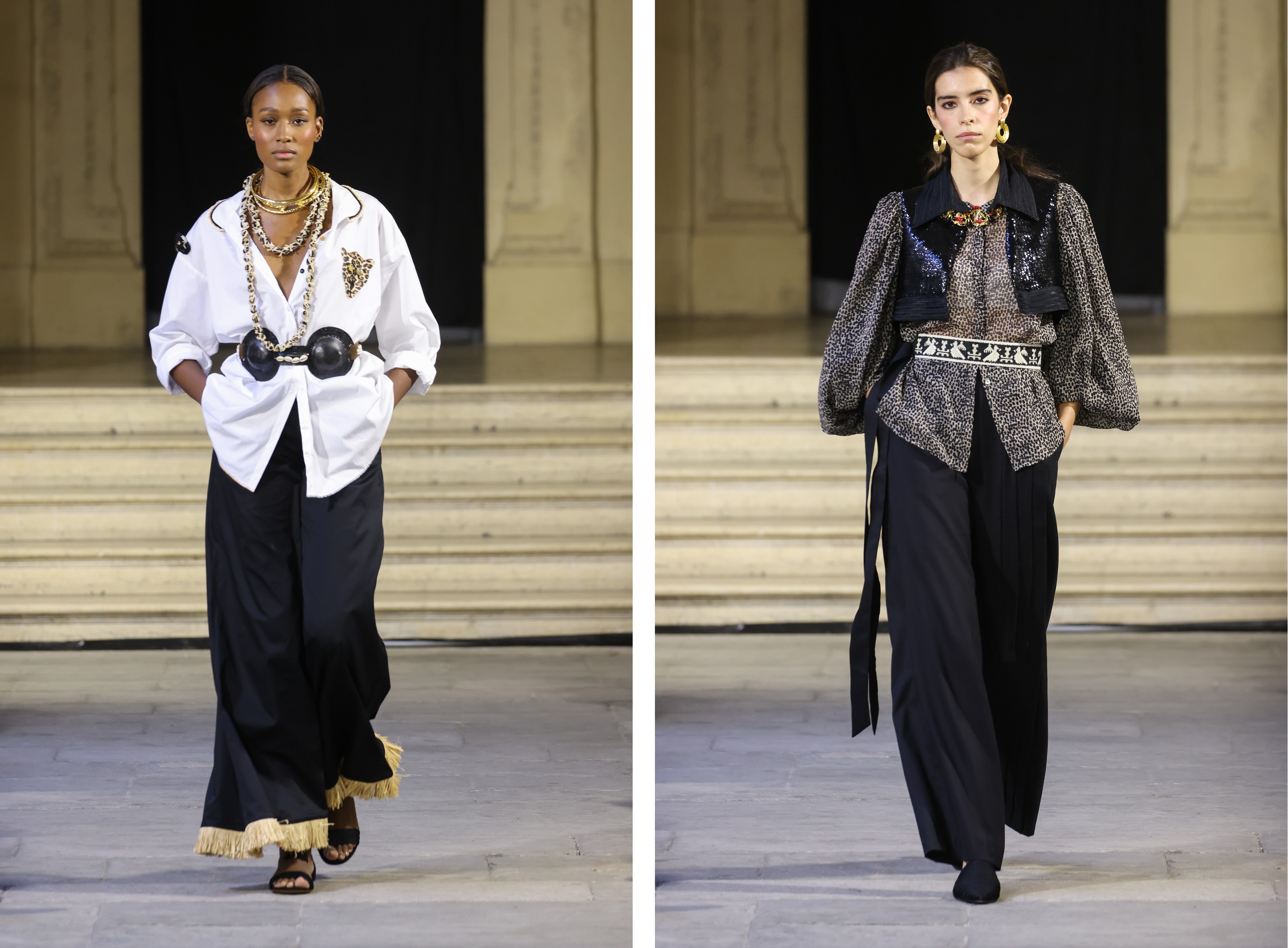 Maison Calamain presented two different collections: one made up of Kaftans and the other made up of hand-embroidered tailored jackets.