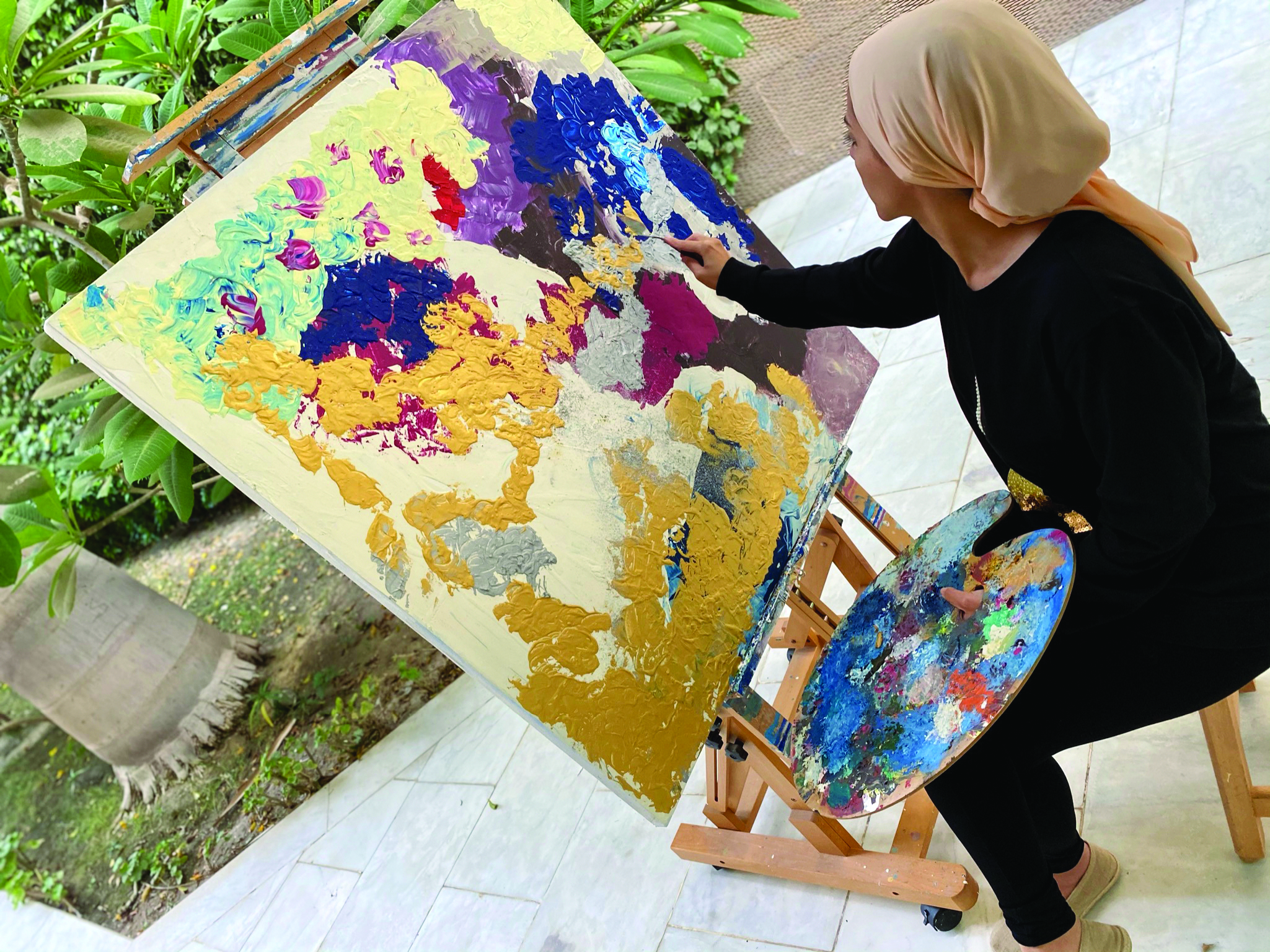 Laila Yassin: I am Egyptian Contemporary Artist and Entrepreneur. My love for colors started at preschool when the teacher asked: “What would you like to be when you grow up?” I instantly responded: “A painter!” At that time, I really wanted to paint all the homes in my city, Cairo. I wanted our homes to look white, colorful, and shiny. That was my dream. I never knew that I am really talented and I never had the chance to really learn art at depth.