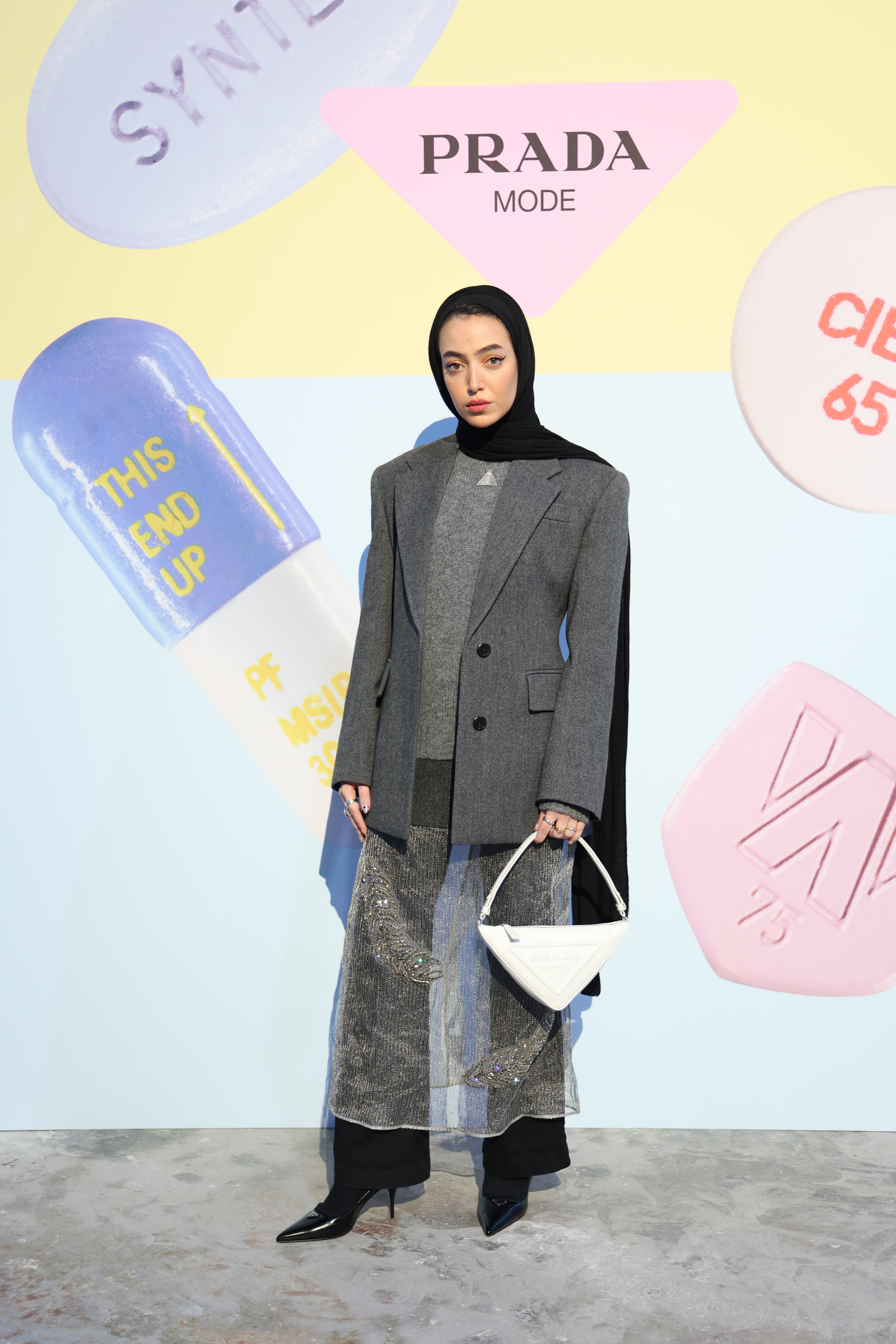 Prada Mode Dubai guests included (in alphabetic order): Wael Al Awar, Khadija Al Bastaki, Nora Al Dabal, Afra Al Dhaheri, H.E. Alia Al Qassimi, Abdulla Al Turki, Myrna Ayad, Adam Bakri, Laila Bin Braik, Mattar Bin Lahej, Anas Bukhash, Benedetta Ghione, Vilma Jurkute, Nadine Kanso, Brendan McGetrick, Hashem Montasser, Yara Mustafa, Sunny Rahbar, Khalid Shafar, Azza Slimene, Andriah Tayeh, among the other.