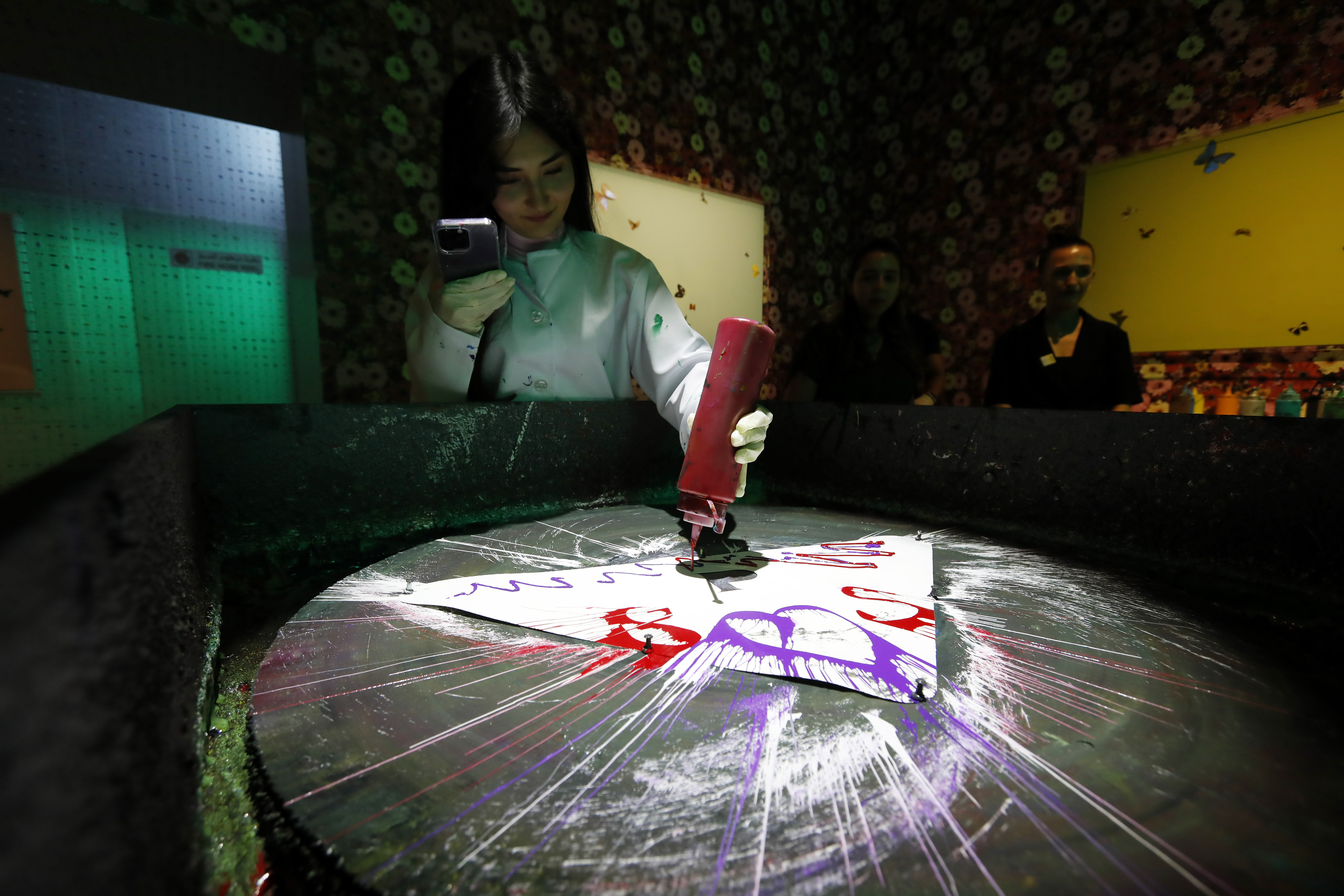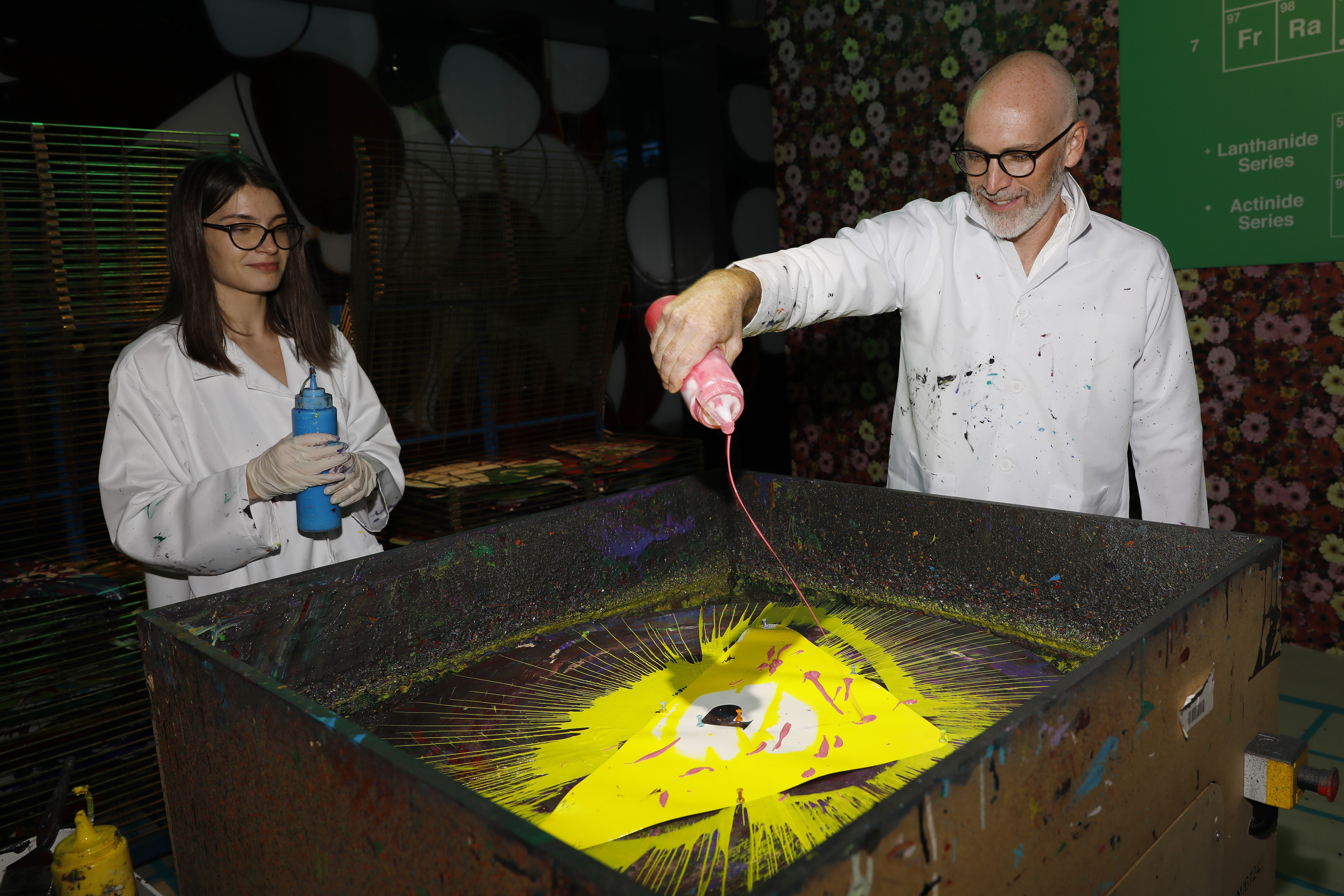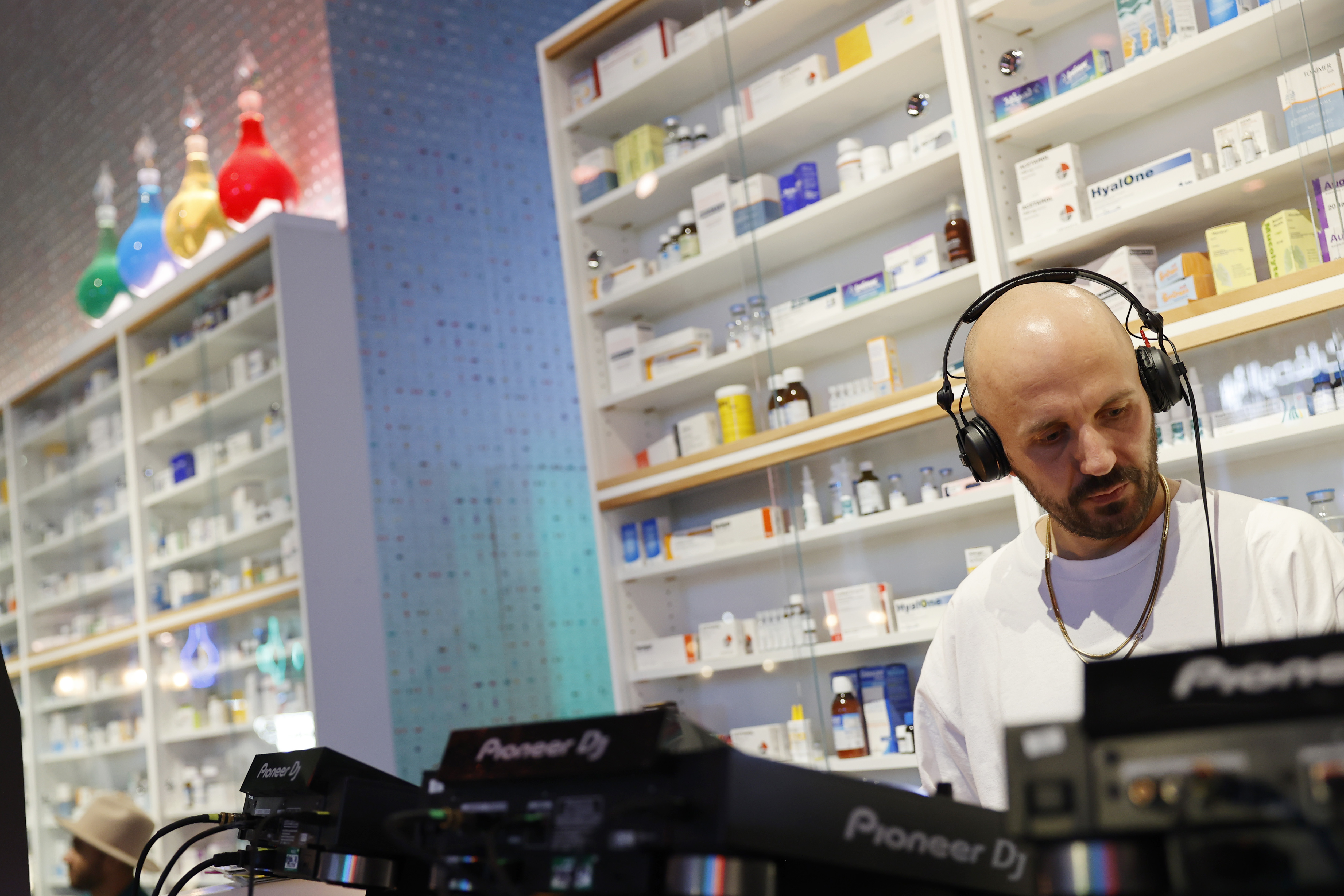 - During the day, Prada Mode’s guests were allowed to join a spin painting workshop where they could create customized paintings by using templates inspired by Pharmacy symbols
