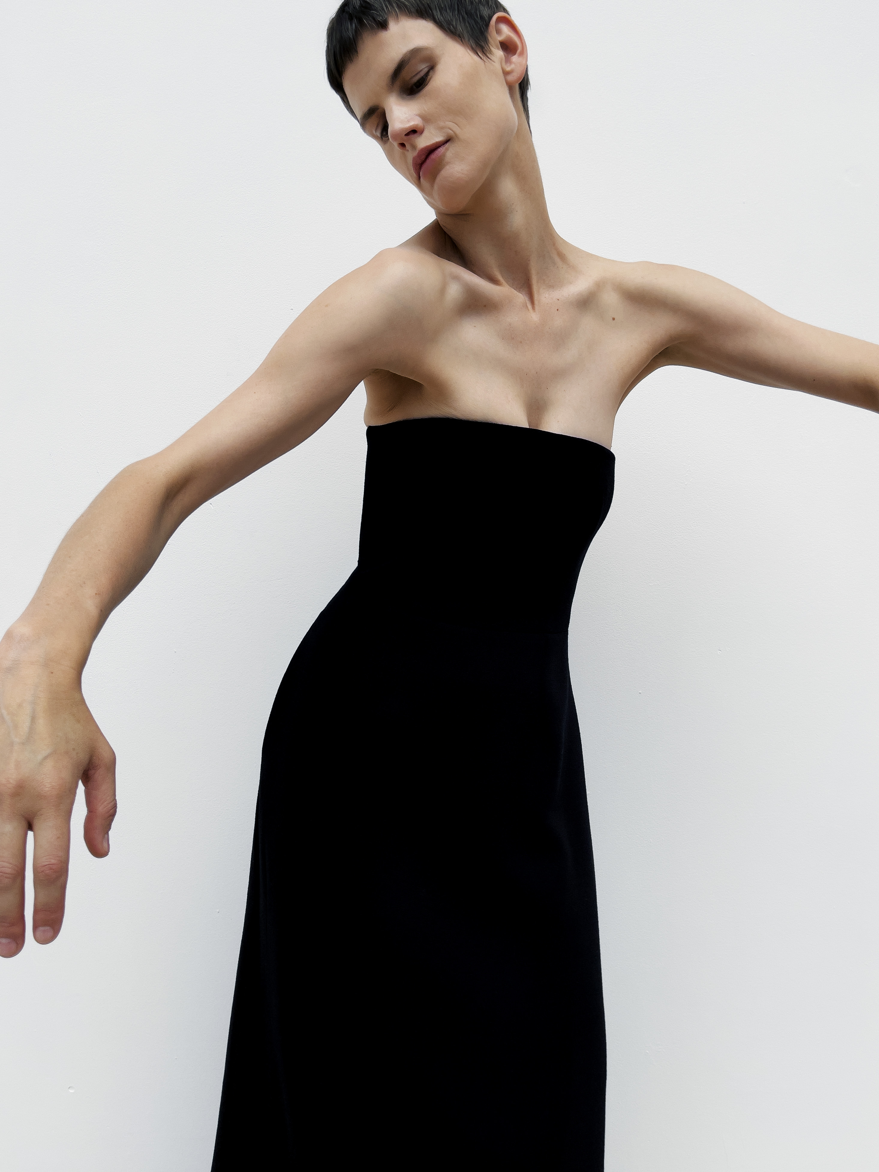 The denim category continues to grow with the ‘Drop’, an ultra-oversized jean in organic denim. The new shape will launch alongside denim pencil skirts in midi and maxi lengths.