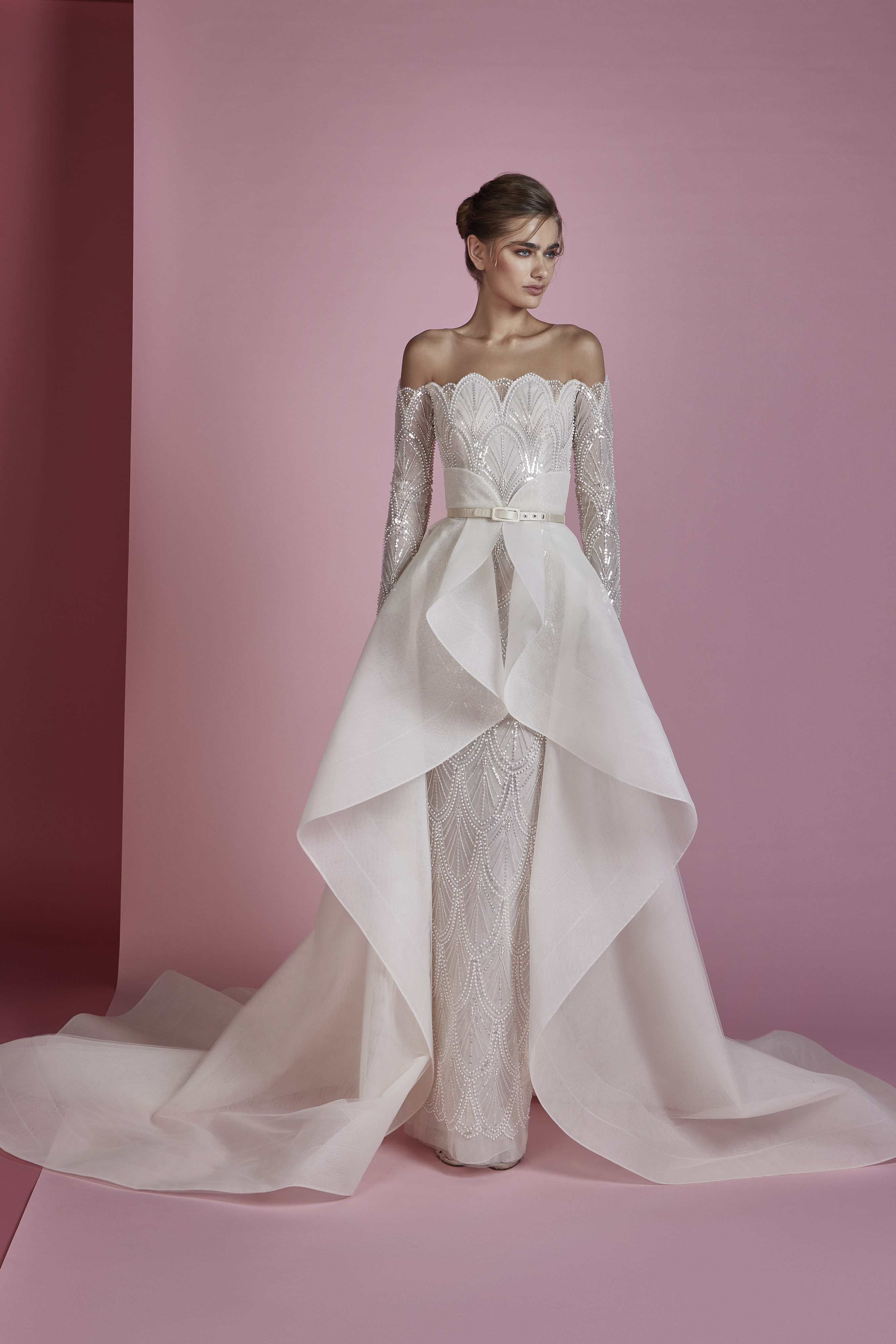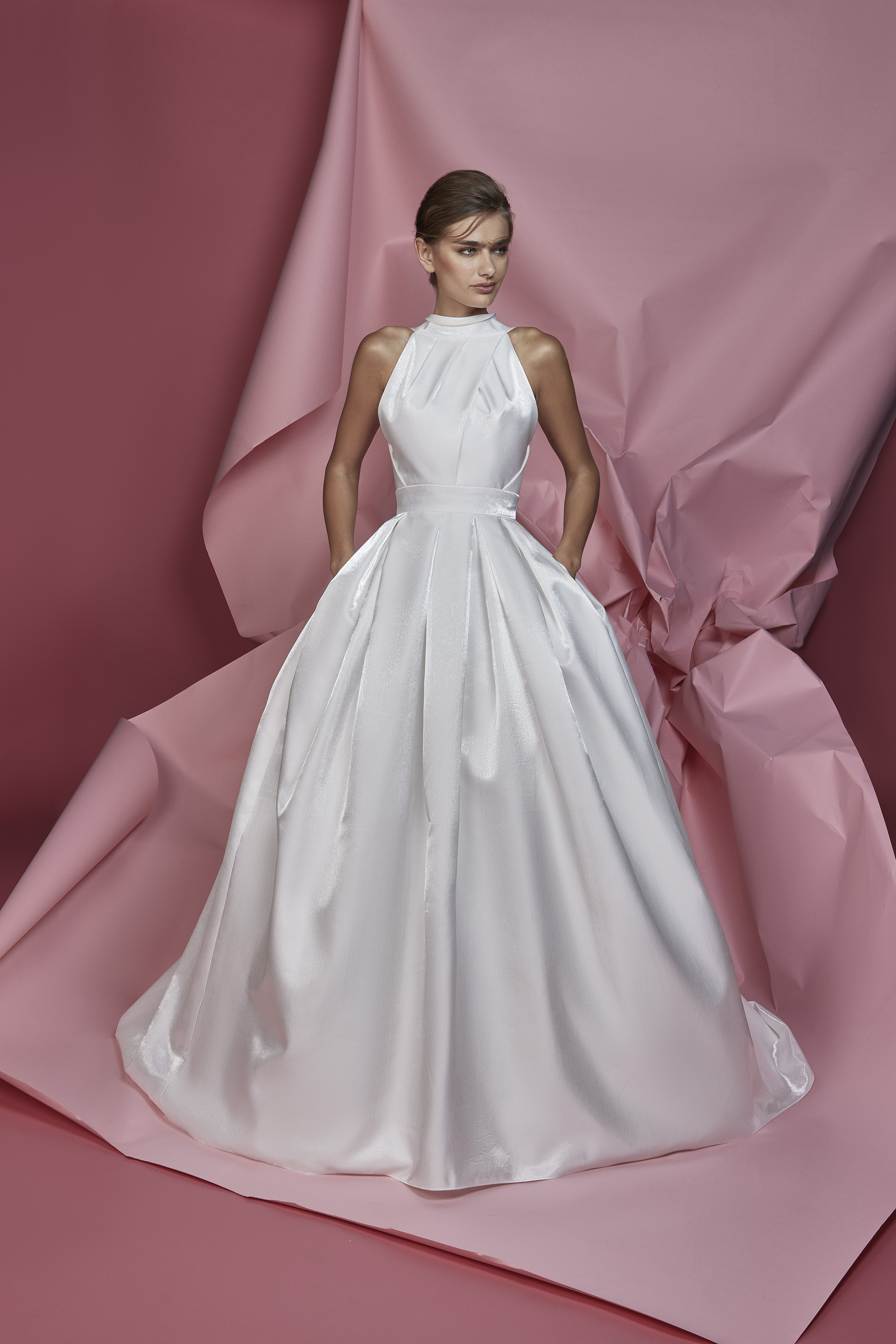 A modern and youthful nature personifies the collection with delicate yet beautifully structured shapes. Feminine designs are met with prevailing forms, perfectly highlighting its stylish and sharp tailoring synonymous with the fashion house. Powerful drapery and sensual silhouettes are considered to glide against the body, adding a touch of femininity to the designs, while notable architectural and voluminous elements provide a dramatic fresh twist, effortlessly speaking to the modern Rami Al Ali bride.