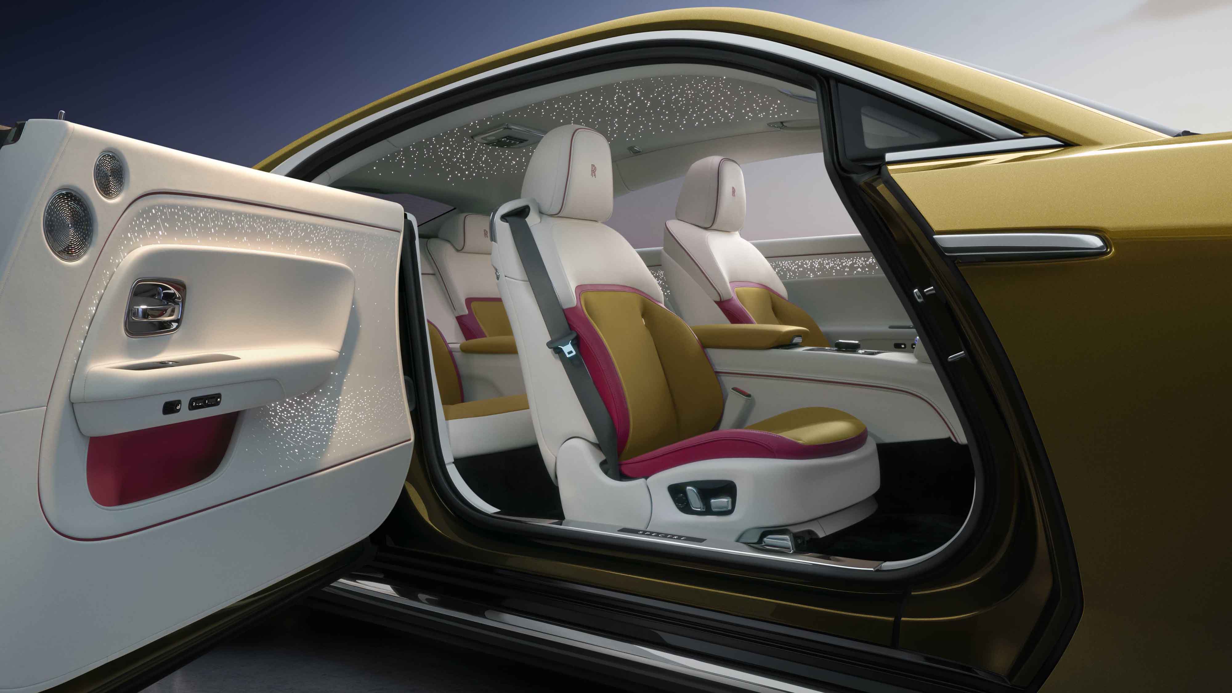 Inside, Spectre is provisioned with the most technologically advanced Bespoke features yet, drawing inspiration from the timeless mystique of the night’s sky. For the first time on a series production Rolls-Royce, Spectre is available with Starlight Doors, which incorporate 4,796 softly illuminated ‘stars’. The coach doors can also be commissioned with a backdrop of wood Canadel Panelling, which takes its name from the cove in the South of France where Sir Henry Royce and his design team spent their winters.