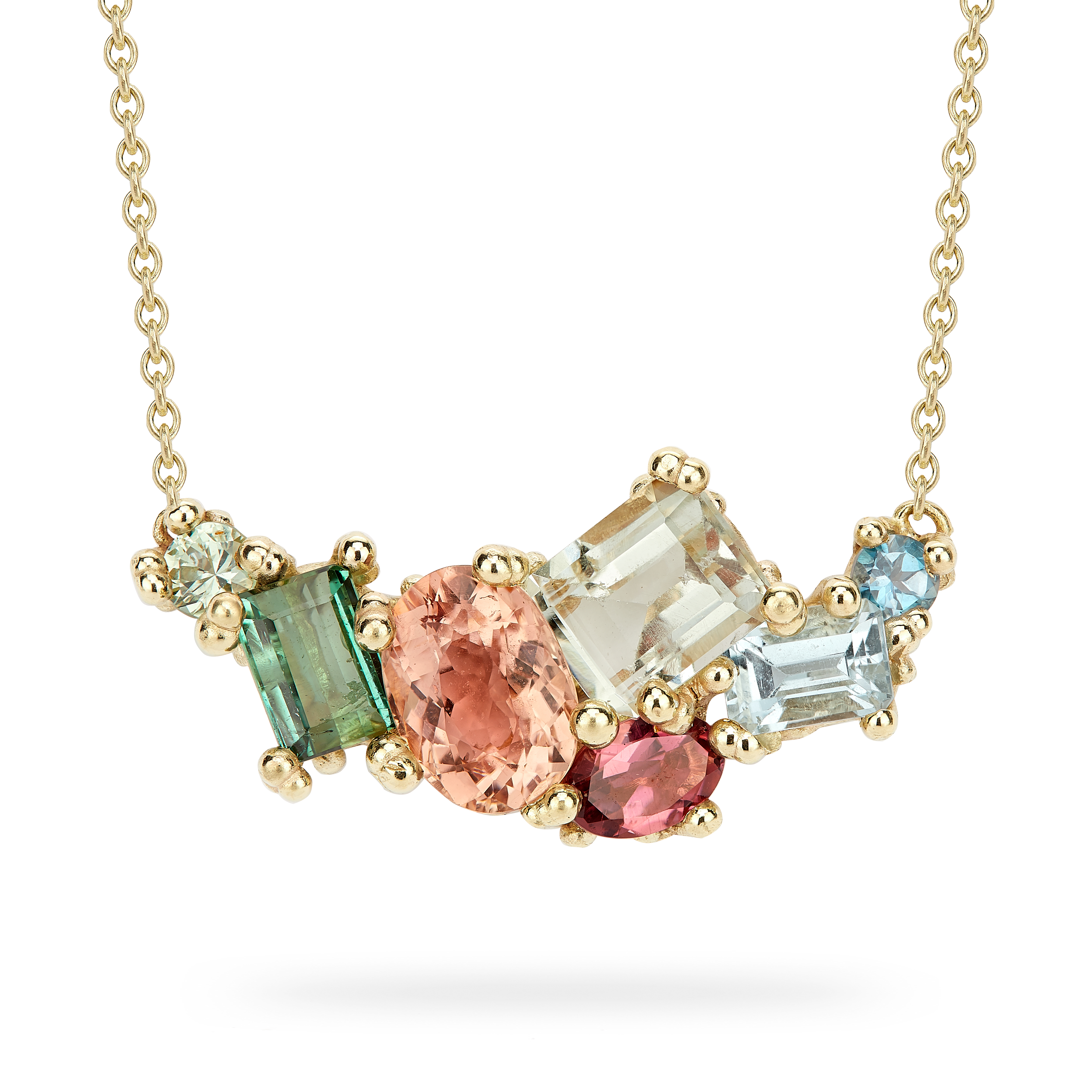 Ruth Tomlinson has long utilised colour in her fine jewellery designs. Her ever evolving one-of-a-kind collection is filled with joy and bursts of rainbow hues in geometric shapes. Each piece of fine jewellery is completely unique and handmade in Ruth’s Hatton Garden atelier.