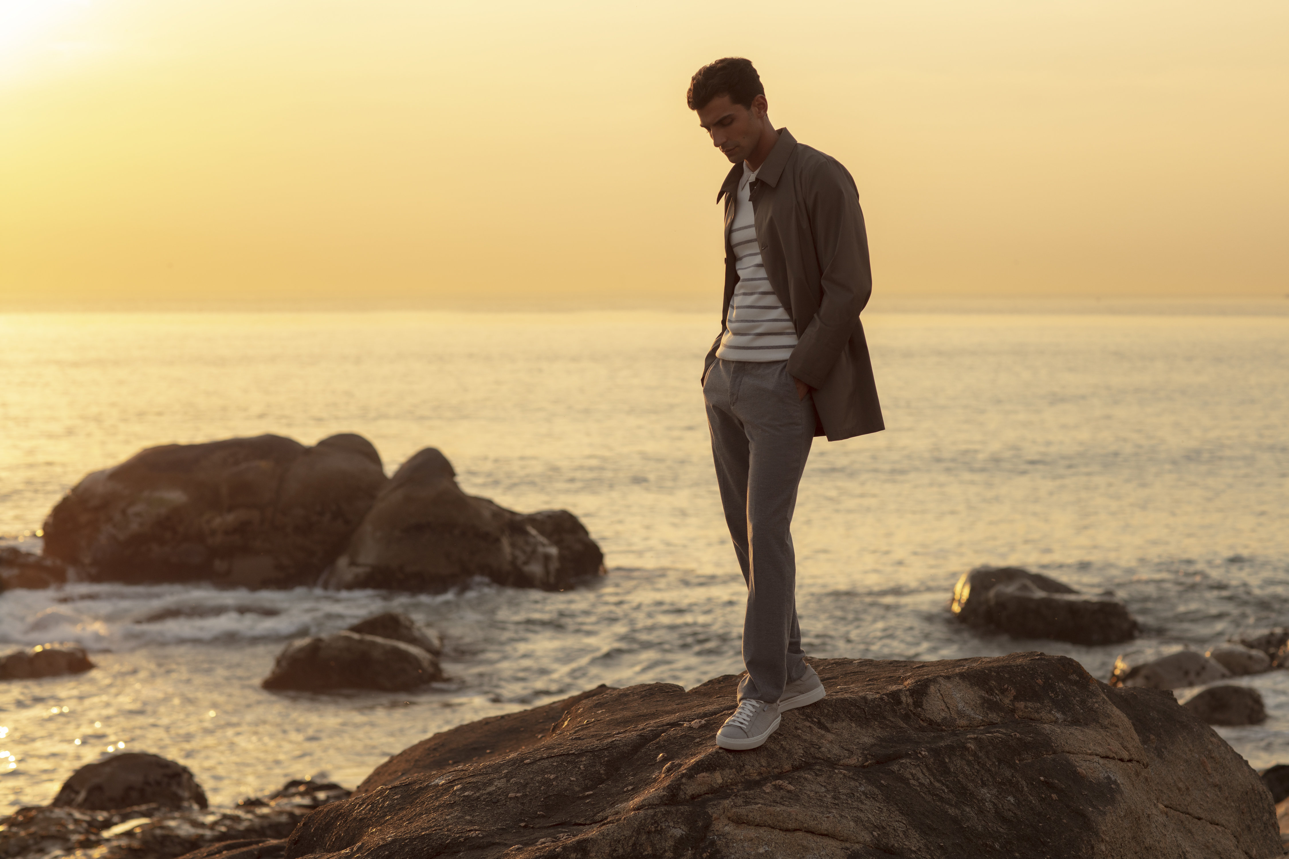 Inspired by nature, heritage, craft and community, this menswear trend highlights outdoors-friendly designs and natural fabrics. Handmade overcoats, recycled parkas, wool blazers, chunky knits, polar fleeces – the key to nailing this trend is to layer it right.