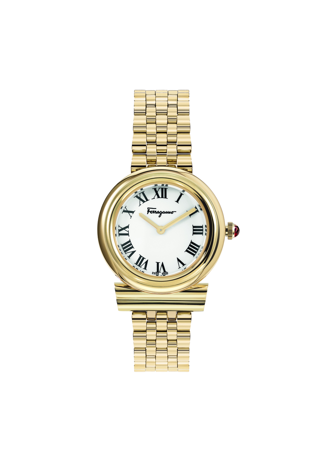 Thanks to the larger volumes, the iconic Gancini motif defining the shape of the case is more recognisable, giving these watches their clear brand imprinting.
