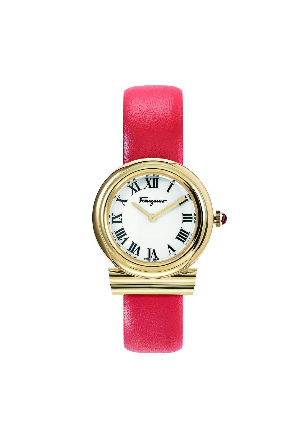 Case: Ø 28 mm stainless steel “Gancini” – crown with red cabochon