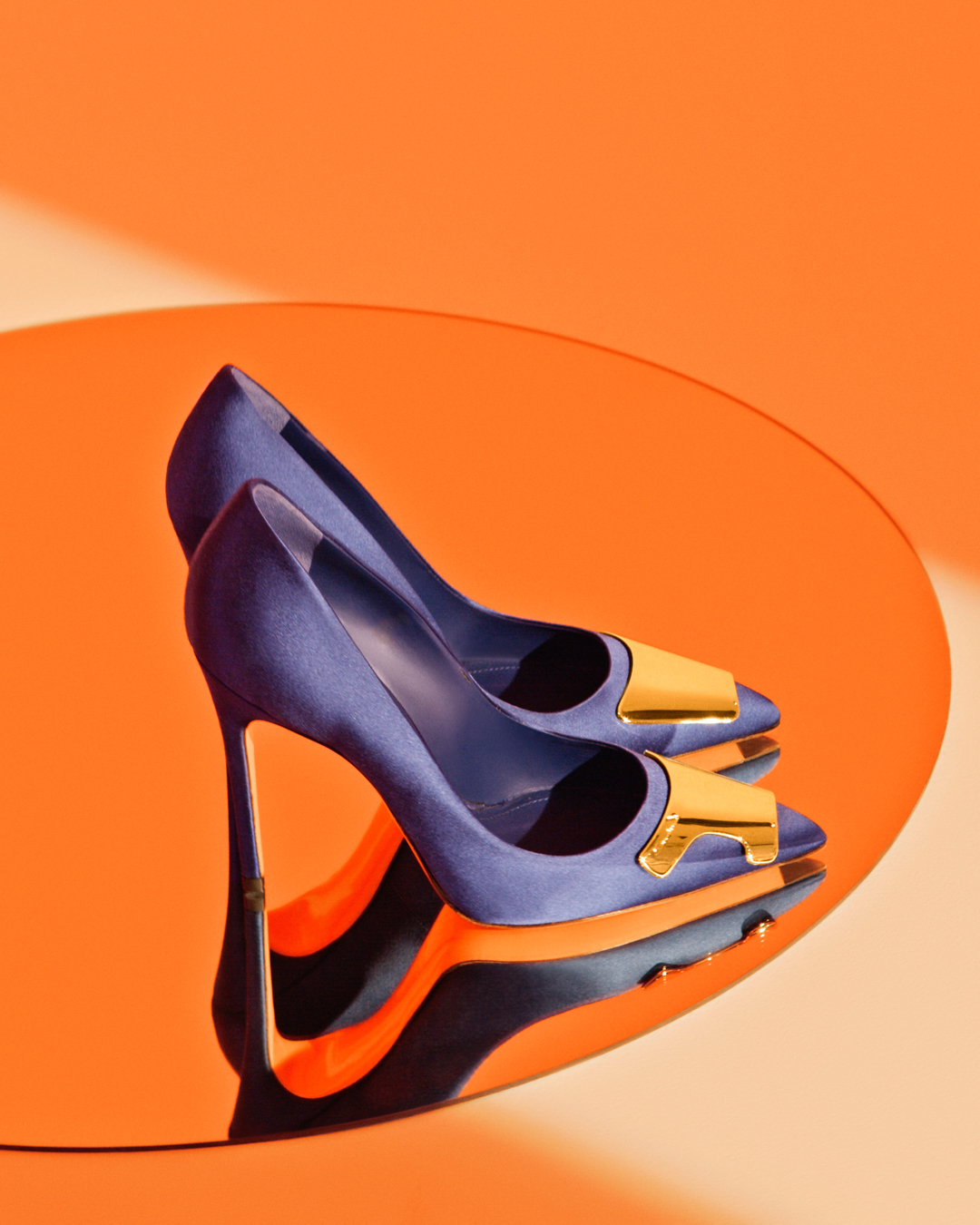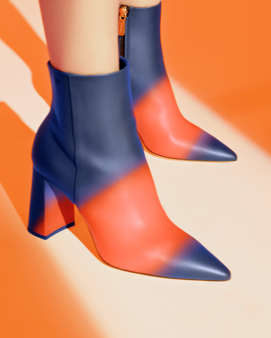 In Santoni’s atelier the vivid image of the modern Woman is taking shape. Natural evolution of the masculine DNA of the brand, She is embodied by two colours that perfectly represent the alchemy between the legacy and the future of the Maison: Arancio Santoni, the bright note of orange that characterizes the brand, and a unique shade of blue, traditionally the purest expression of Santoni man, that when interpreted by a woman acquires a sensual note.