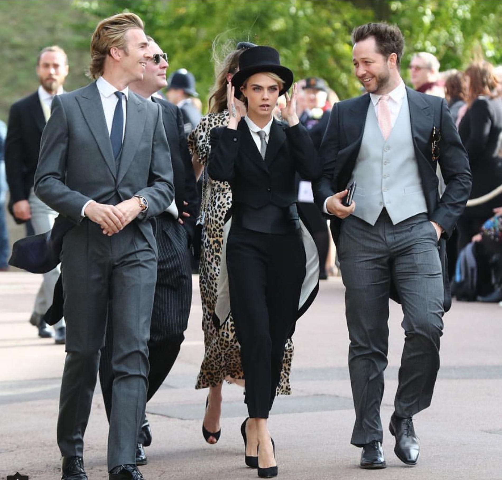 Cara’s not exactly known for coloring in the lines, so the model's take on following the dress code came with a twist: she chose her outfit according to instructions for the men, showing up in an Emporio Armani suit, complete with coat tails and top hat. Bravo Cara!