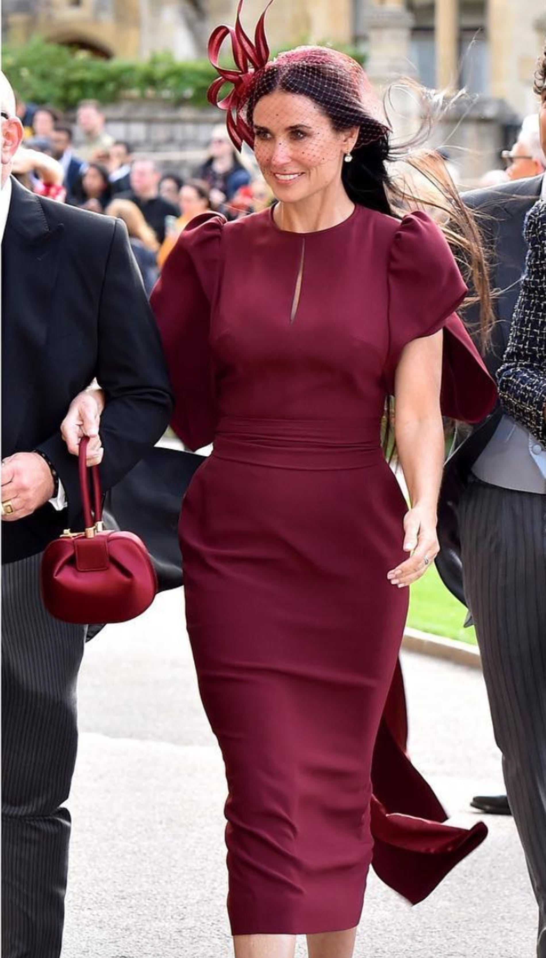 Who knew Demi Moore was going to be at Eugenie and Jack's big day? A close friend of the bride's parents, the actress was carrying her eponymous bag, Gabriela Hearst’s Demi tote, and wearing a maroon Stella McCartney dress and matching hat from Philip Treacy.