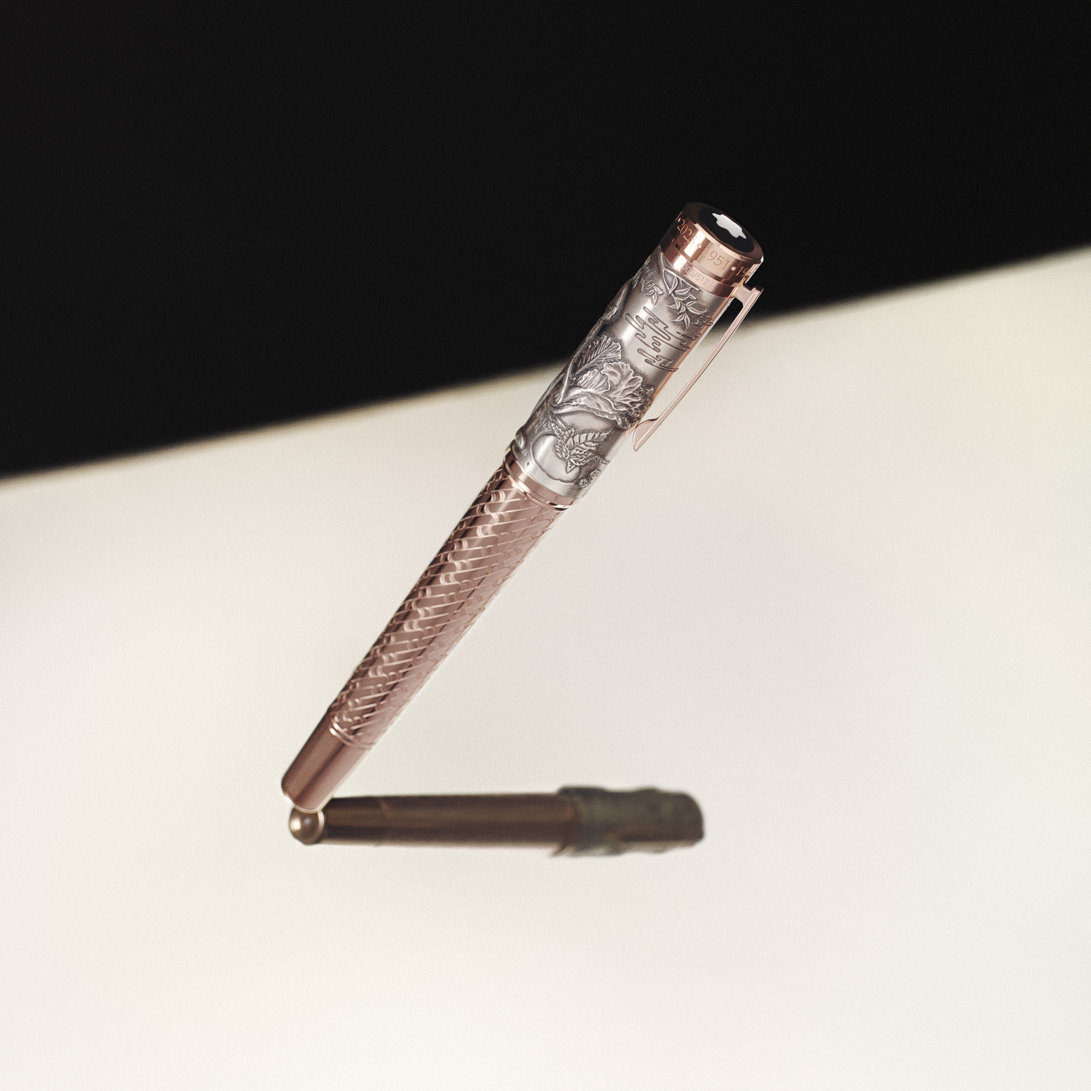 In visual contrast to the cap, the rose gold-coated barrel is decorated with a delicately engraved abstract pattern of ‘lucky clouds’ which are mean to symbolize luck and happiness. The cone is set with a radiant pearl – the birthstone of the rabbit sign. The current year of the rabbit, 2023, is engraved on the cap ring alongside the six previous years of the rabbit. The precious Au 750 solid rose gold nib of the writing instrument is delicately engraved with a representation of the rabbit. The cap is crowned with the Montblanc emblem in mother-of-pearl.