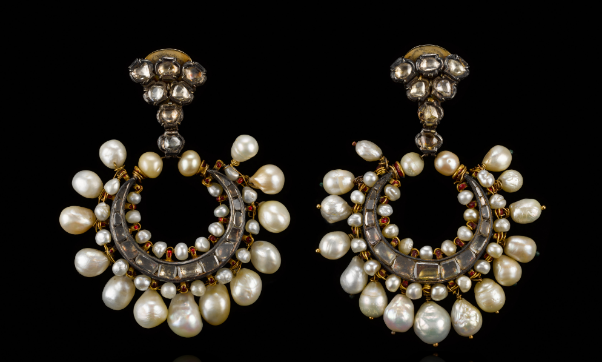 A Pair of Crescent-shaped Pearl and Diamond Earrings, India, Hyderabad, late 18th century (est. £50,000-70,000)
