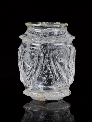 Rock crystal, from which this flask was carved, is the purest form of quartz, and is renowned for both its hardness and clarity and associated with air and water in philosophy and poetry. Produced during the heyday of Fatimid power, it is though that these pieces were used by ladies of the harem for cosmetic purposes.