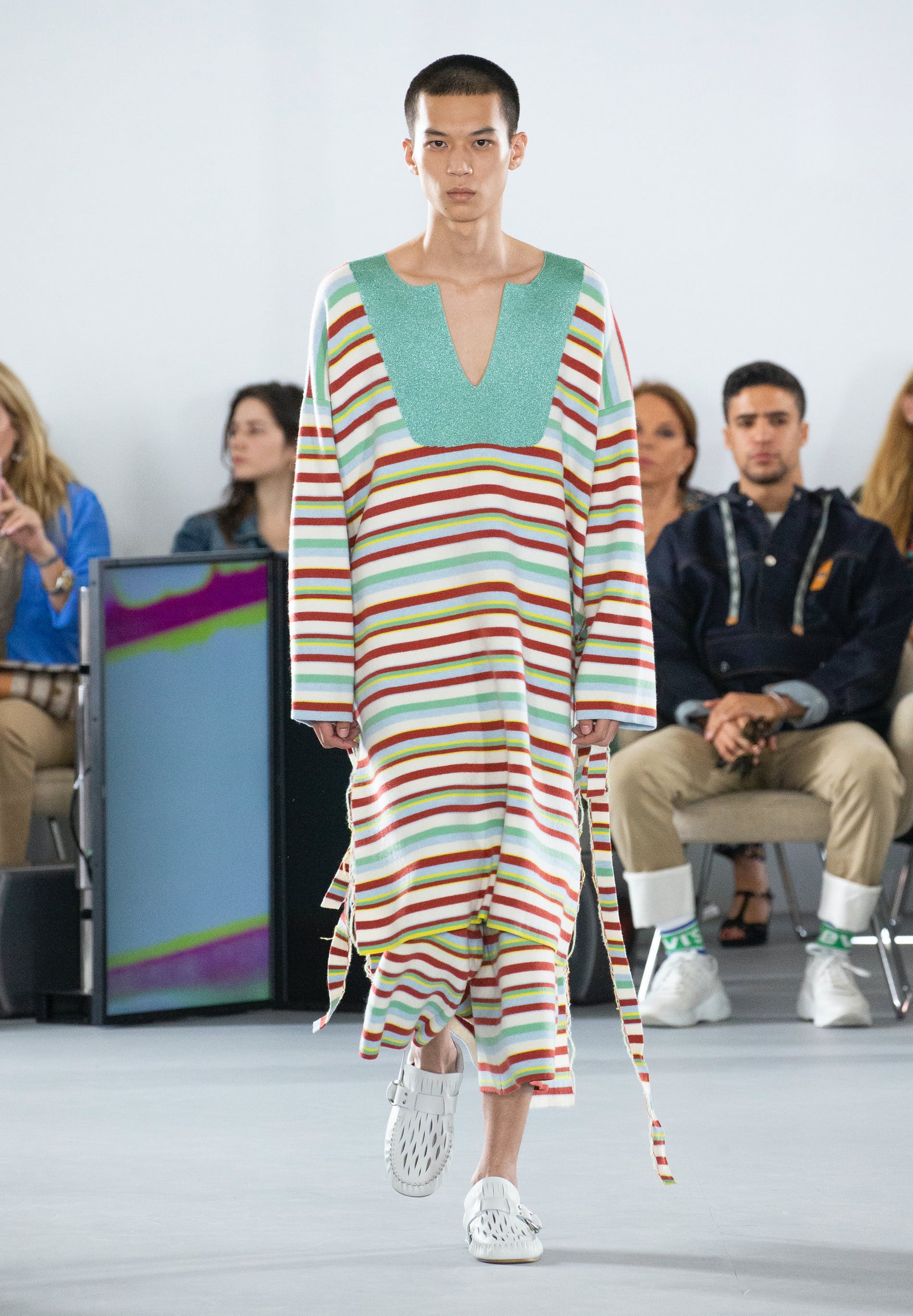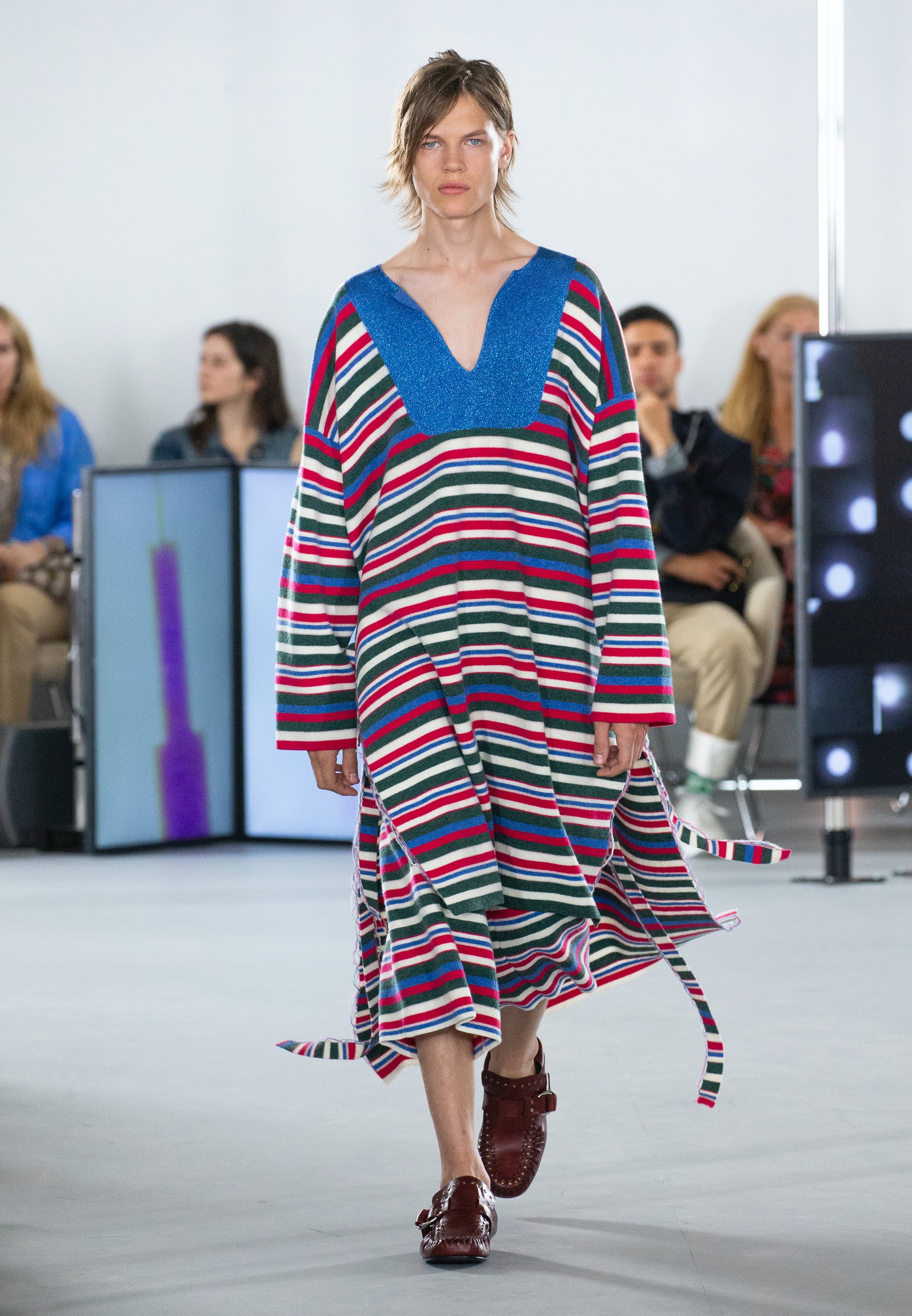 The collection invokes otherworldly perspectives of the day-to-day through a dream-like filter - populated with airy knits and tanks in chevron or vertical stripes.