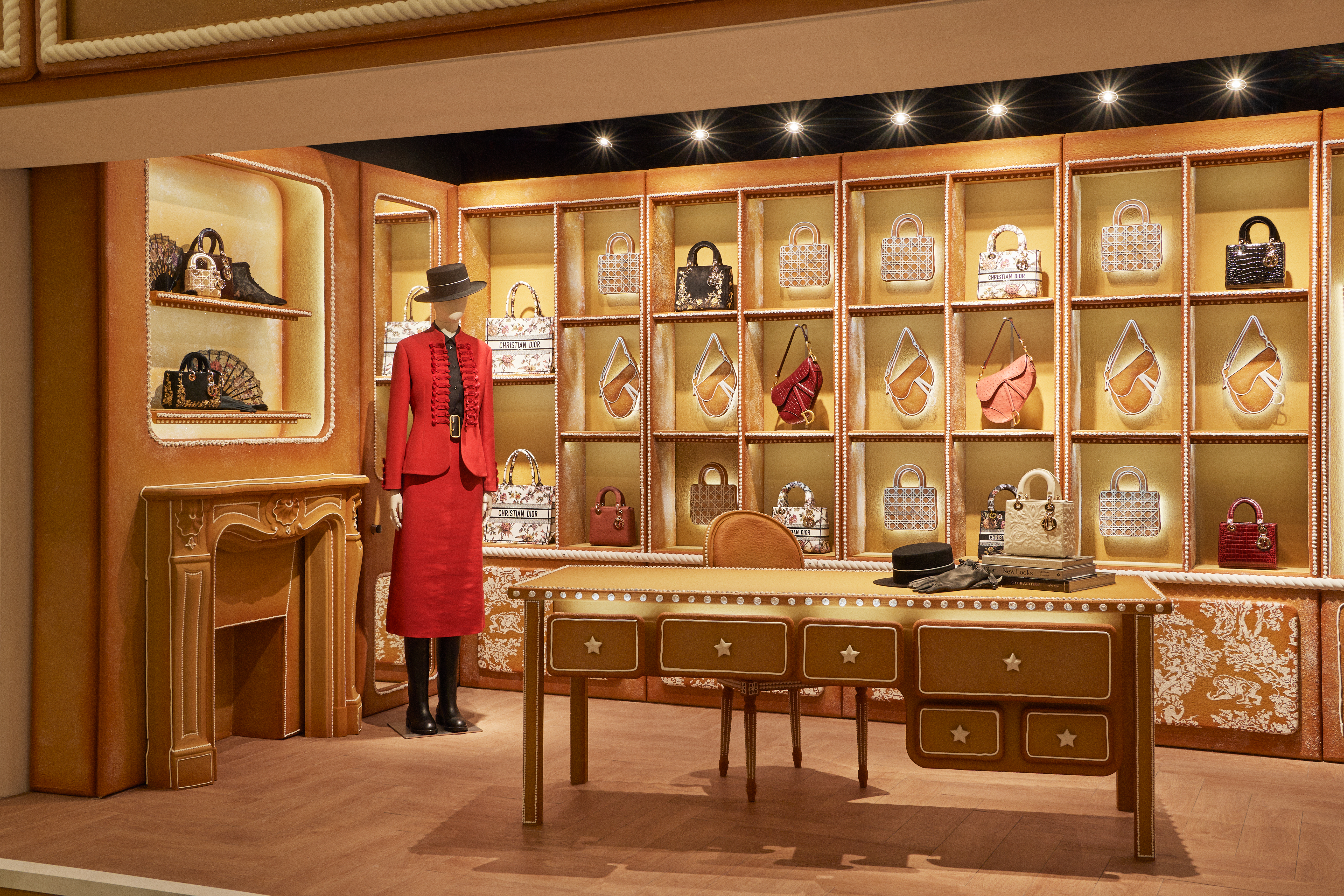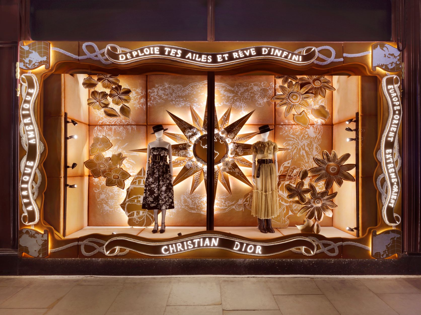 From November 10 to January 3, 2023, the façade of the Brompton Road edifice will be adorned with a monumental installation aglow with a play of light radiantly showcasing Dior’s fundamental references as reinterpreted by artist Pietro Ruffo for the Dior cruise 2023 collection. The compass rose, lucky stars and scintillating flowers will guide visitors along the historic window displays – a captivating attraction that draws people from all over the world, transformed and brought to life by a fantastic gingerbread tableau. A journey that stretches the limits of the imagination, exploring the House’s different worlds and symbols, from fashion to beauty.