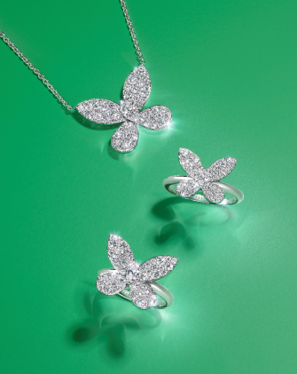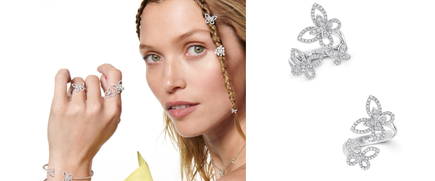 From a kaleidoscope of butterflies performing a perfectly synchronised aerial dance to the shimmering iridescence of their wings as they flutter in the breeze, Graff captures their playful personalities with limitless femininity.