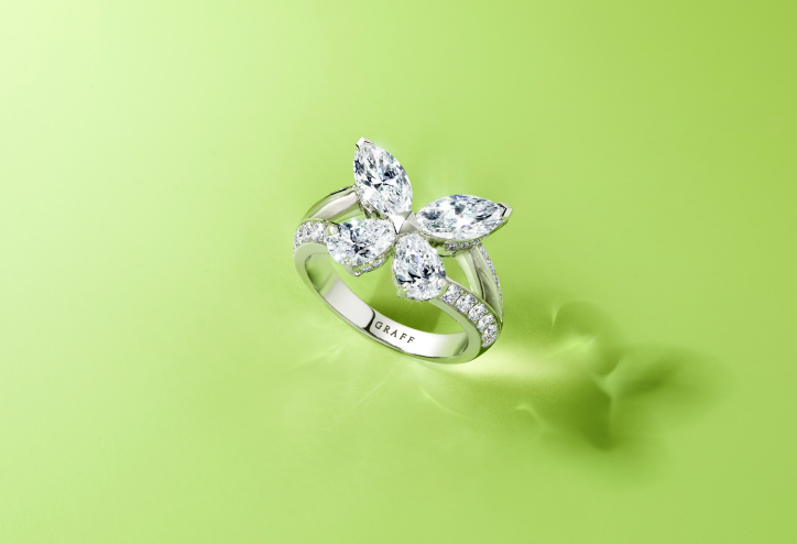 The perfect symmetry of a butterfly’s wings is beautifully expressed in Graff’s Classic Butterfly collection, with their alluring form elegantly depicted in pear shape and marquise diamonds.