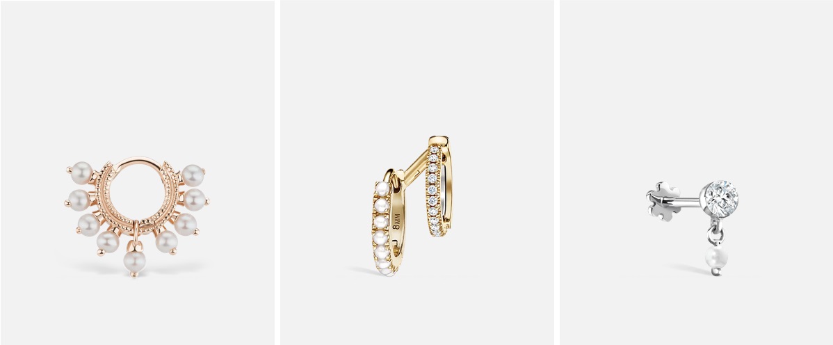 Add a touch of glamour to your day with Maria Tash’s hand-picked edit of pearl jewelry. From the Pearl Eternity Hoop Earring to the Pearl Coronet Hoop Earring, the June birthstone is no longer a byword for boring. These designs make the classic luminous stone standout amongst the crowd.