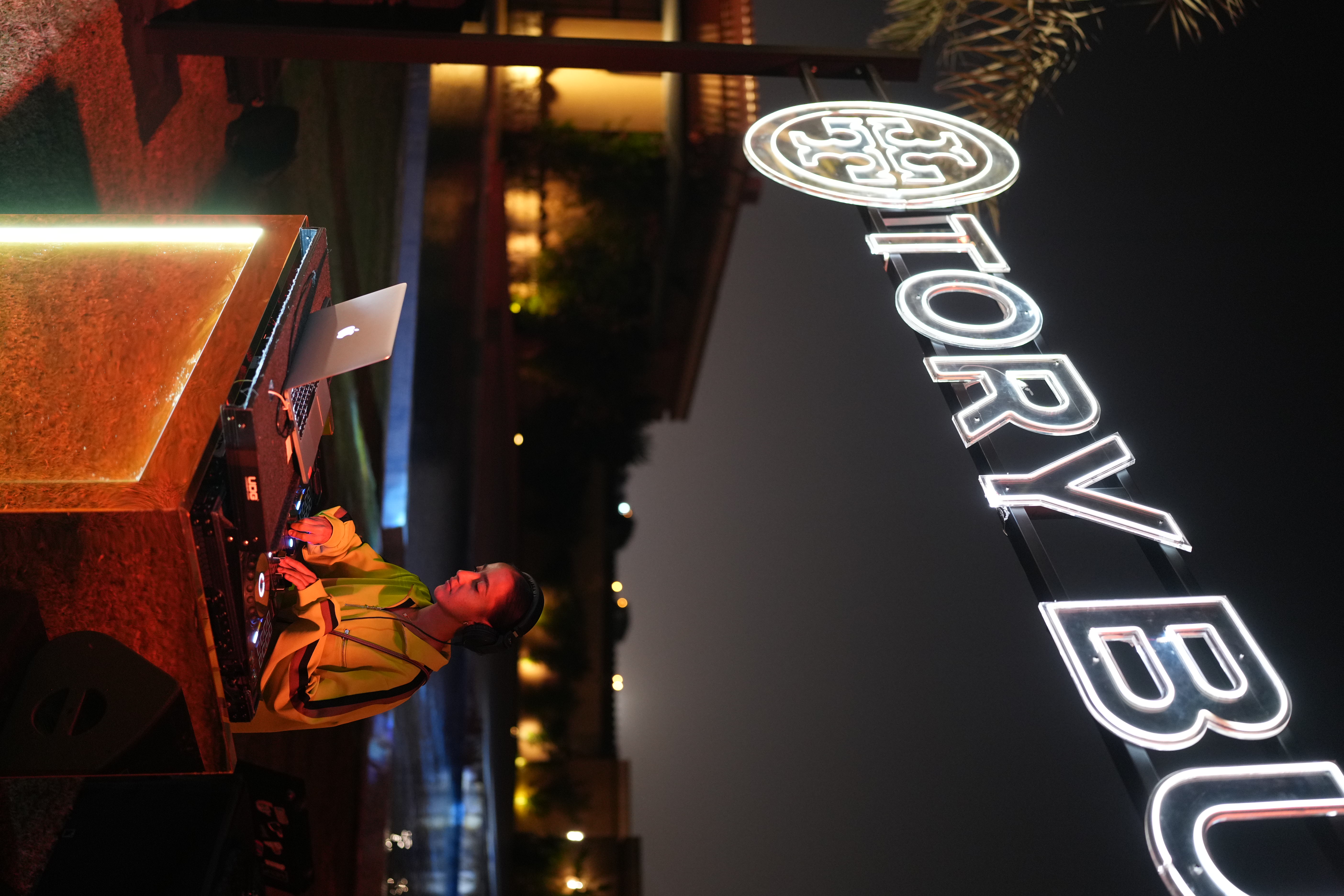 After arriving at the venue, guests sipped speciality coffees and listened to music from local DJ, DJ Leen. In a photo booth with an infinity mirror effect, they were invited to interact with the T Monogram pattern and receive pictures in a digital format for sharing on social media. As the light faded, a series of 3D hologram projections lit up the night, creating a celestial iteration of the New York City skyline and the Riyadh skyline before morphing into the T Monogram pattern and logo and concluding with a special message -- Tory Burch ♡ Riyadh.