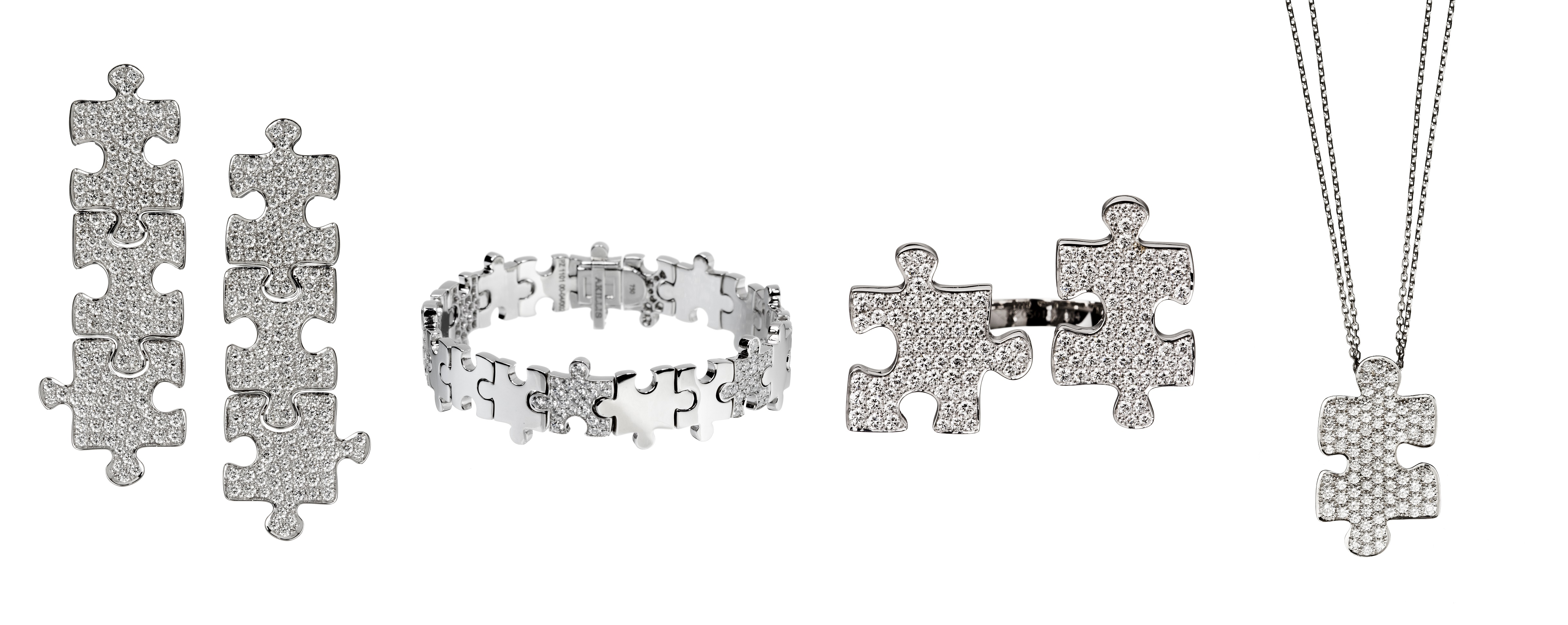 PUZZLE line put fun into AKILLIS’ collections. French designer Caroline Gaspard made the choice of using a strong, universal symbol, the PUZZLE, which everybody can refer too. The shape of the jigsaw PUZZLE will recall memories of childhood games, but it also represents life as a whole: Puzzle stands for destiny, a succession of various sequences added all together to create a unique life path.