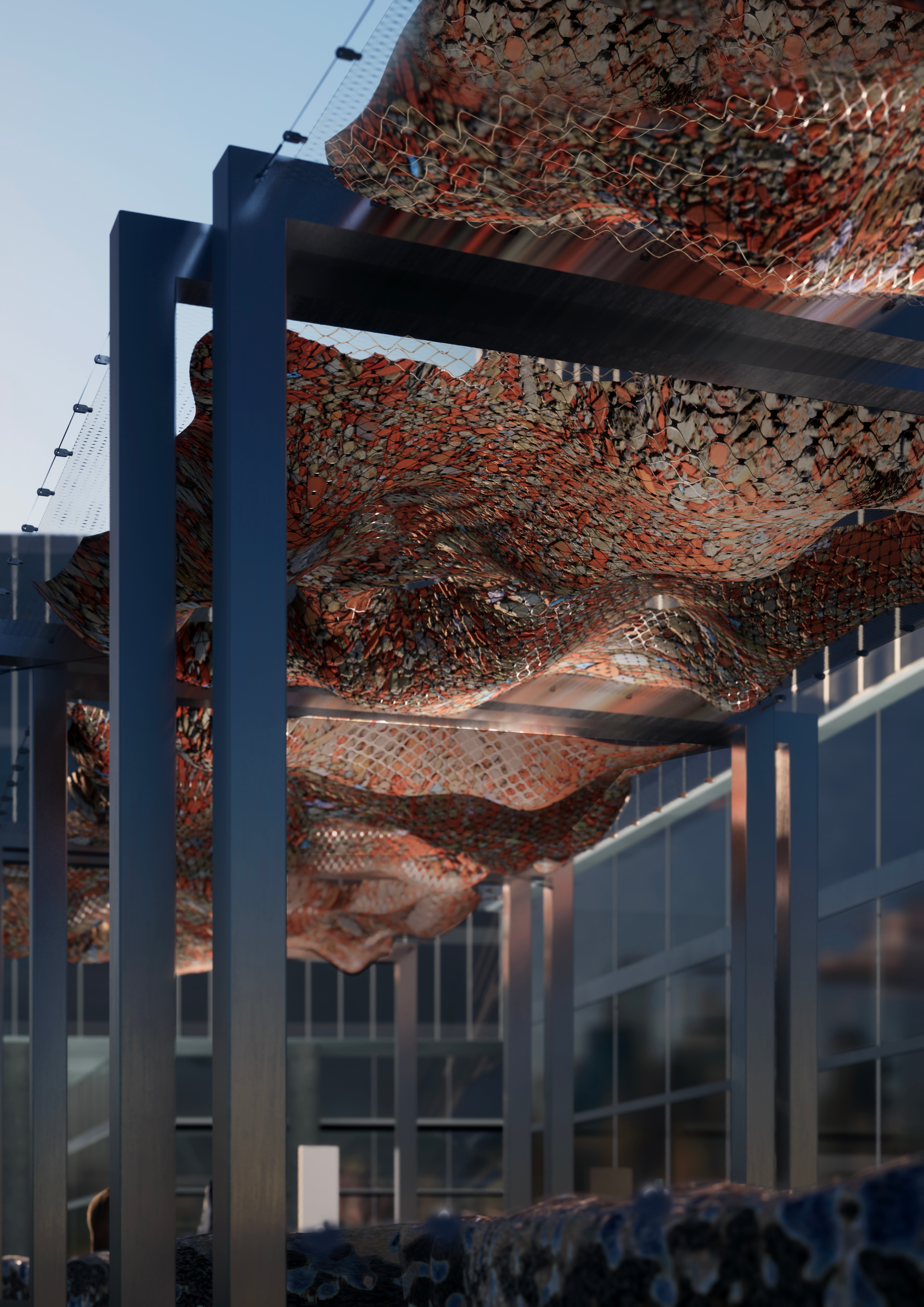 Fadaa Space is an architecture and design collective based in Amman and New York City, that is dedicated to environmentally responsive design. Their installation KIN calls upon visitors to rethink their relationship with nature, to end its exploitation and live symbiotically. The KIN bricks are bio and oyster bricks, created using discarded shellfish from restaurants, along with natural, low-carbon lime, with the installation hosting native plants and species. Such commitment to sustainability has seen their project D/O Aqaba be shortlisted for Sustainable Interior at the Dezeen Awards 2022.