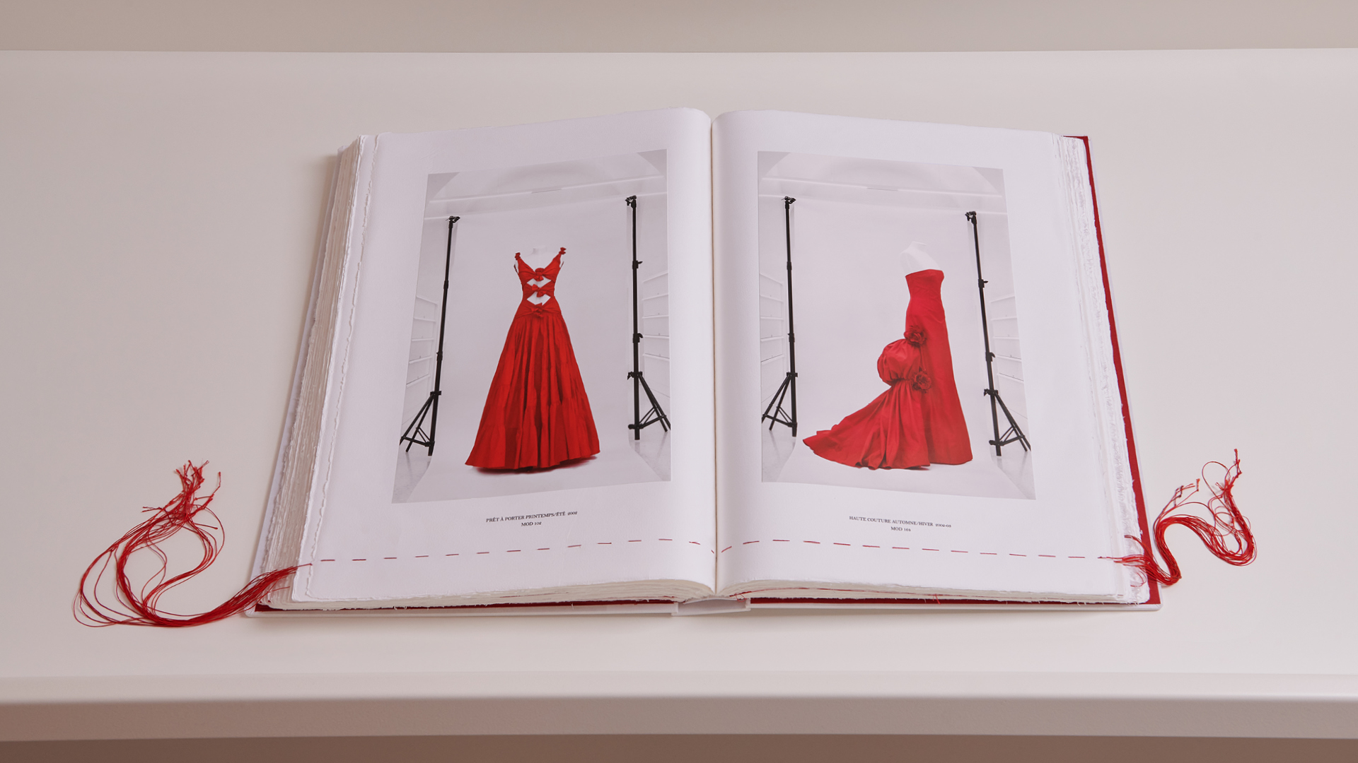 Rosso Valentino is an essential chapter of the narrative of the Maison, a synonym of its glorious history and of its aesthetic identity. The research of the connection between then and now, brought to the creation of a masterpiece Haute Couture book, Rosso, a unique opera that explores the personality of the iconic Rosso Valentino through the decades, entirely handmade in the Valentino Atelier. It is a study within the Maison’s renowned colour: the most powerful, recognizable, and recognized symbol that t ook the name of its cr eator in 1985.