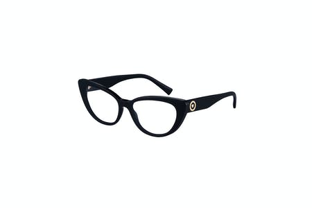Sleek cat-eye optical glasses with a thin acetate frame. The delicate temples are enriched with metal logo lettering. The classic frames are available in Havana and black.
