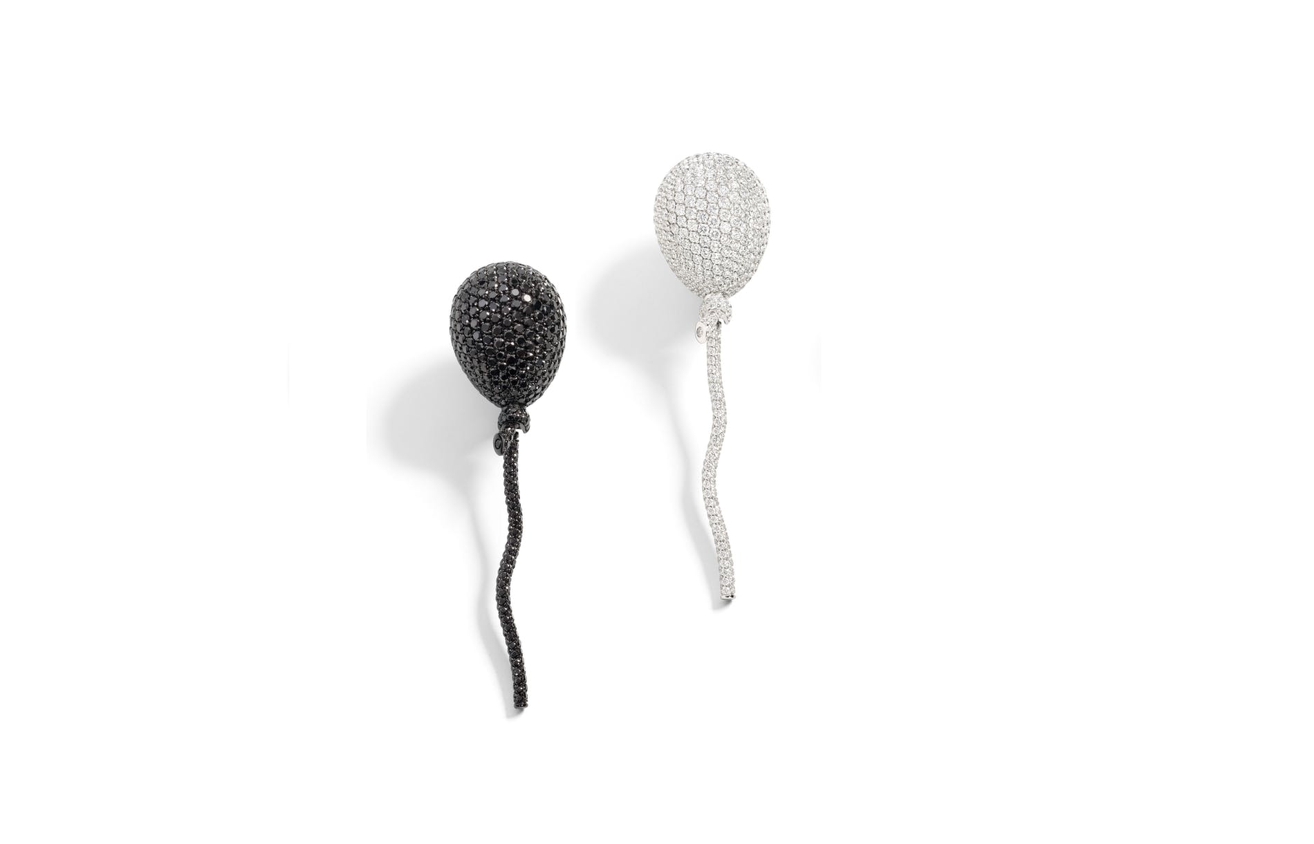Beautiful on its own, the Palloncino ring is magnificent when paired, as the ergonomic shape allows two rings to be worn on the same finger, in opposite directions. While the earclip can be paired with a model made with diamonds of the same color but also lends itself to creating the black + white pair: a Vhernier classic!