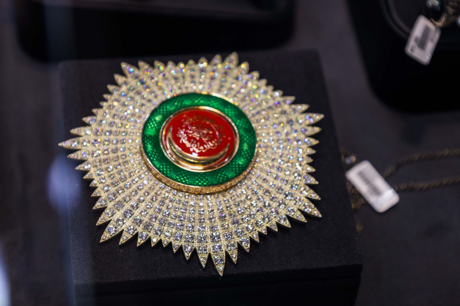 The Turkish jeweler " Kiswa Jewellery" displayed special gold crafts under the theme "Jewellery passed down through generations," inlaying pieces and scents from the Kaaba's covering in gold and silver works. The Kiswa dates back to the Ottoman era.