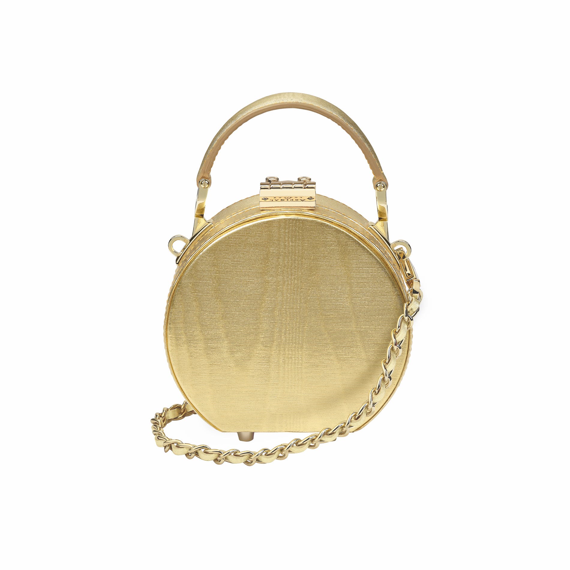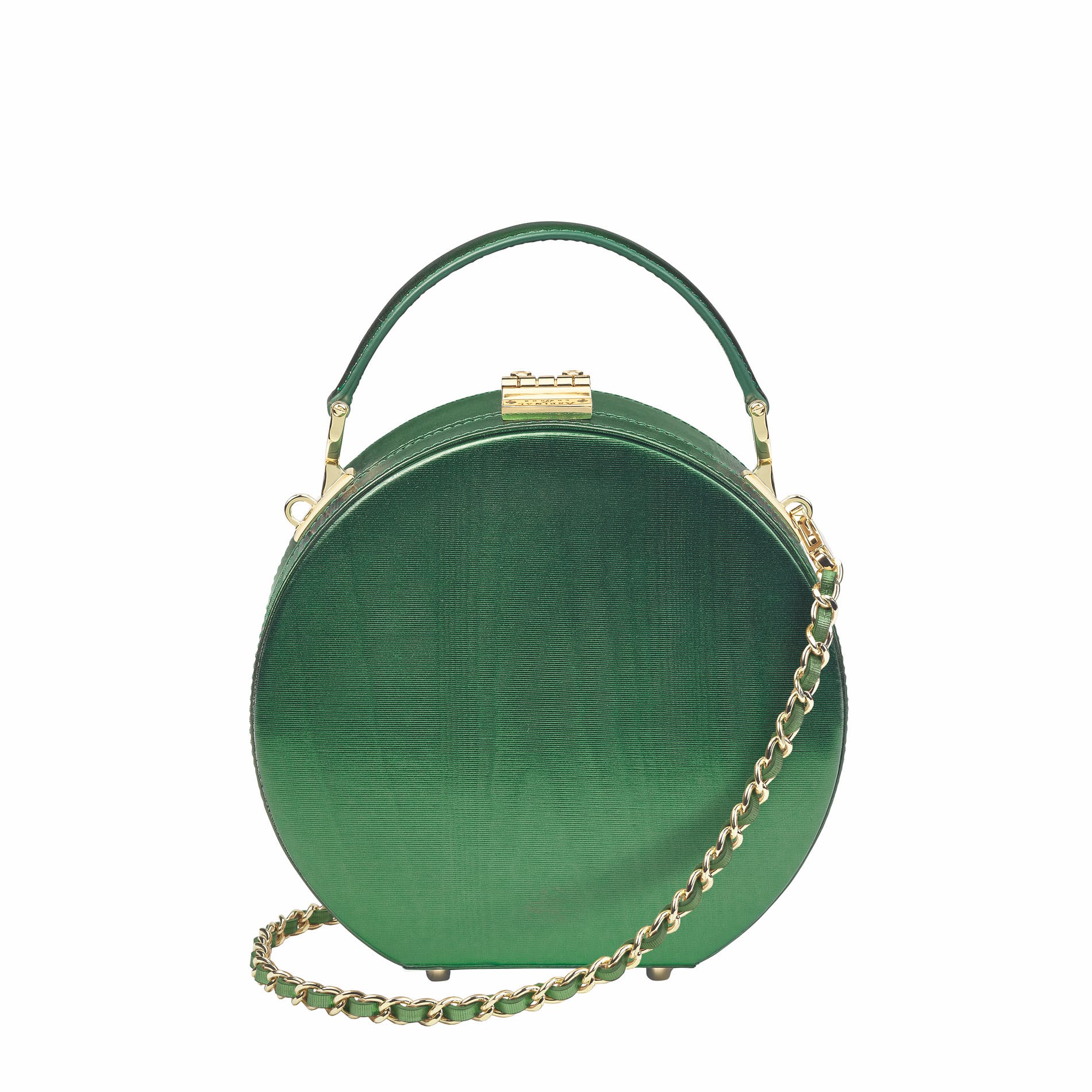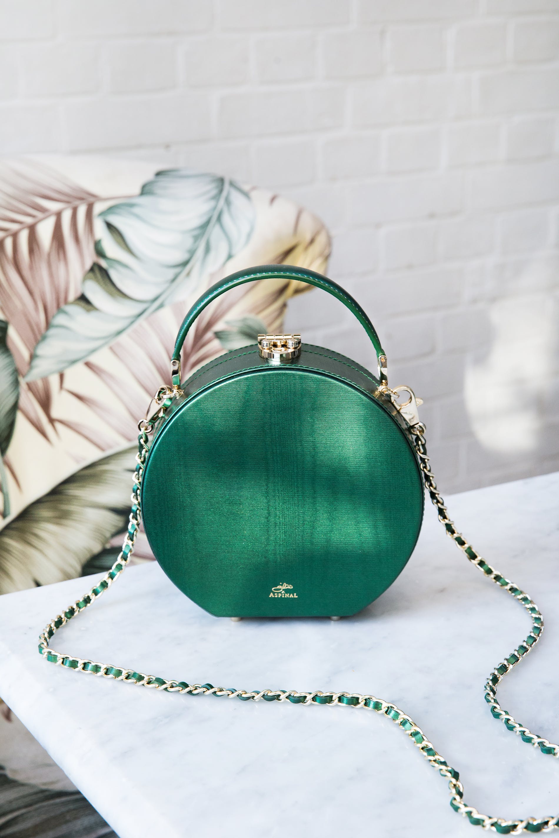 ‘Today its fluctuating between the all-over printed trunk and the moiré hatboxes which I love, because normally that would be something that we would do in silk. But we got this tannery to emboss moiré on the leather and then in the metallics, which I think has come out really beautifully. And they have proved to be very popular…one of our best sellers in fact. They are such a classic Aspinal shape as well, and to have the chance to do them in such different fabrications and materials was really nice.’